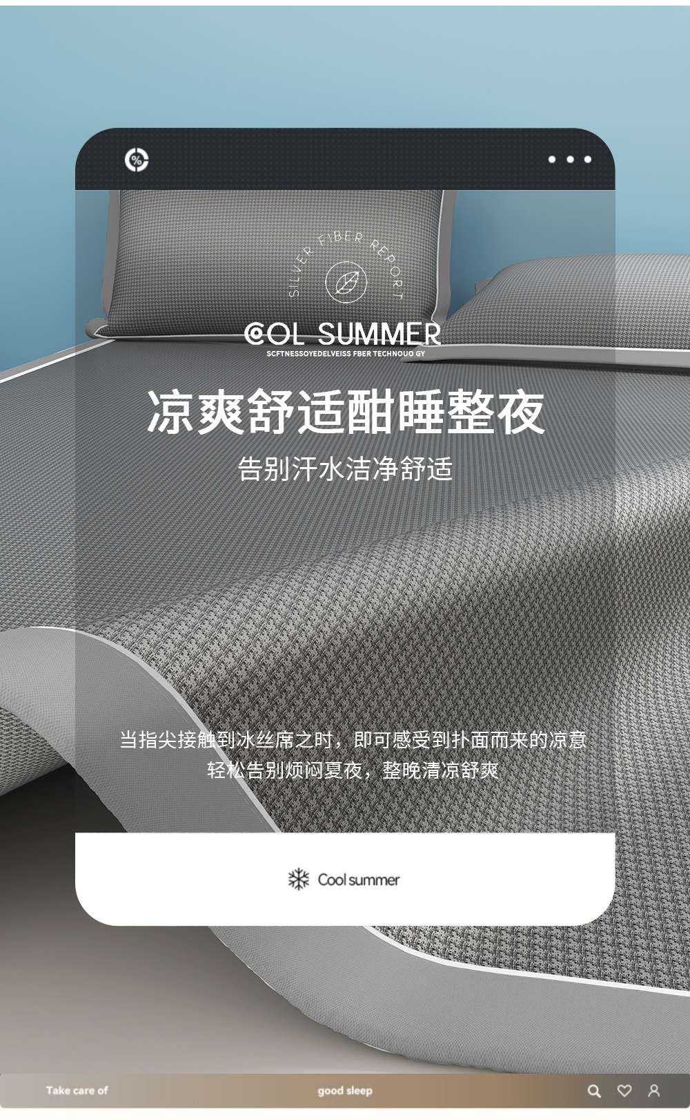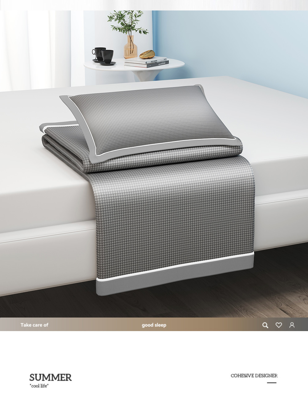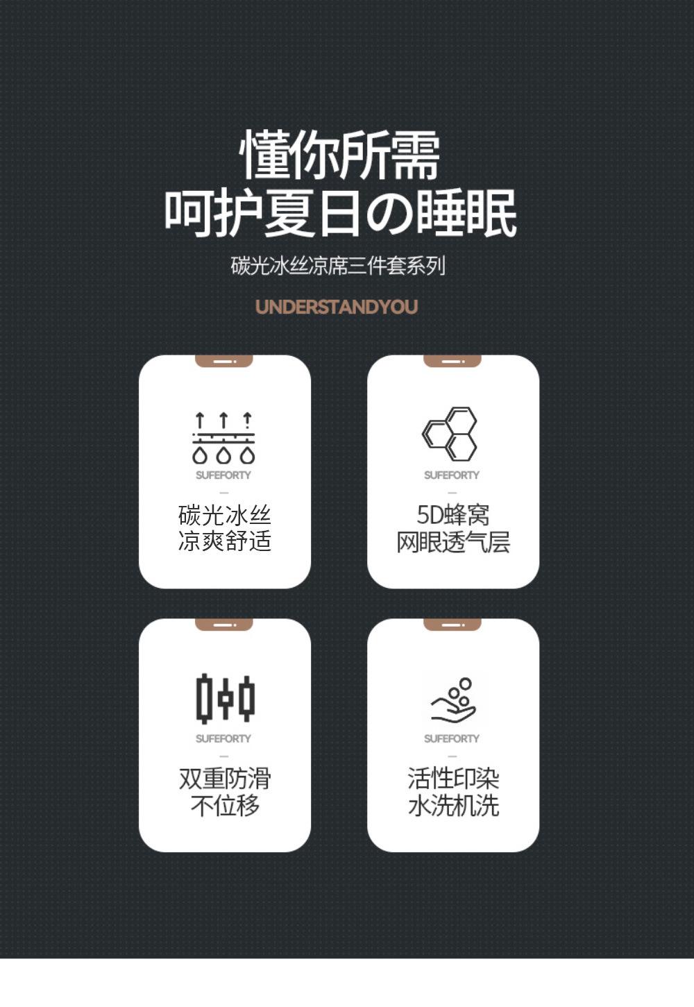 【冰丝席三件套】夏季凉席冰丝a类席三件套家用可机水洗单人学生宿舍凉席空调软席。ry