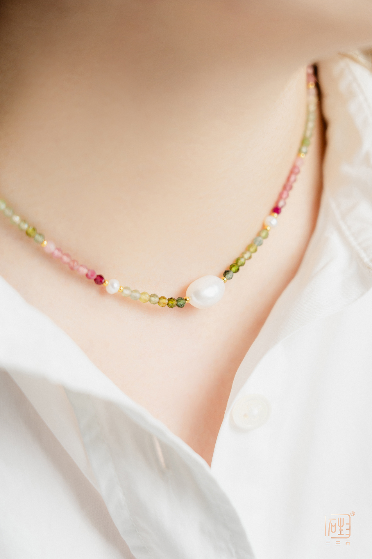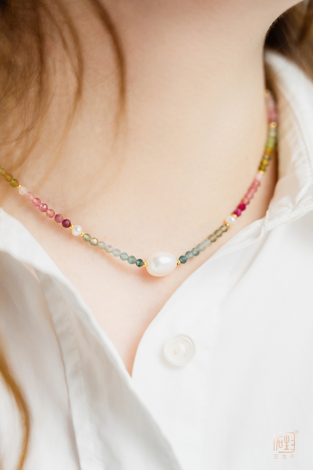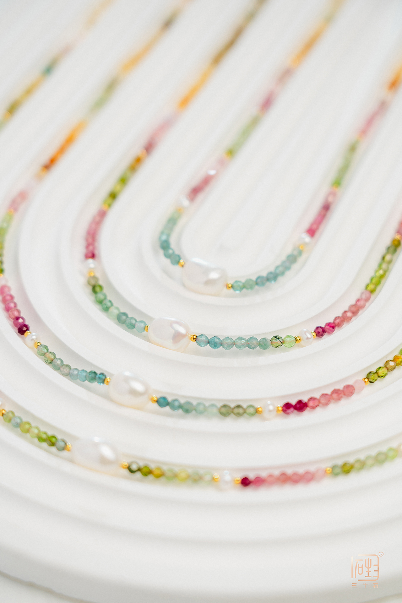 —— 彩色刻面碧玺巴洛克珍珠项链