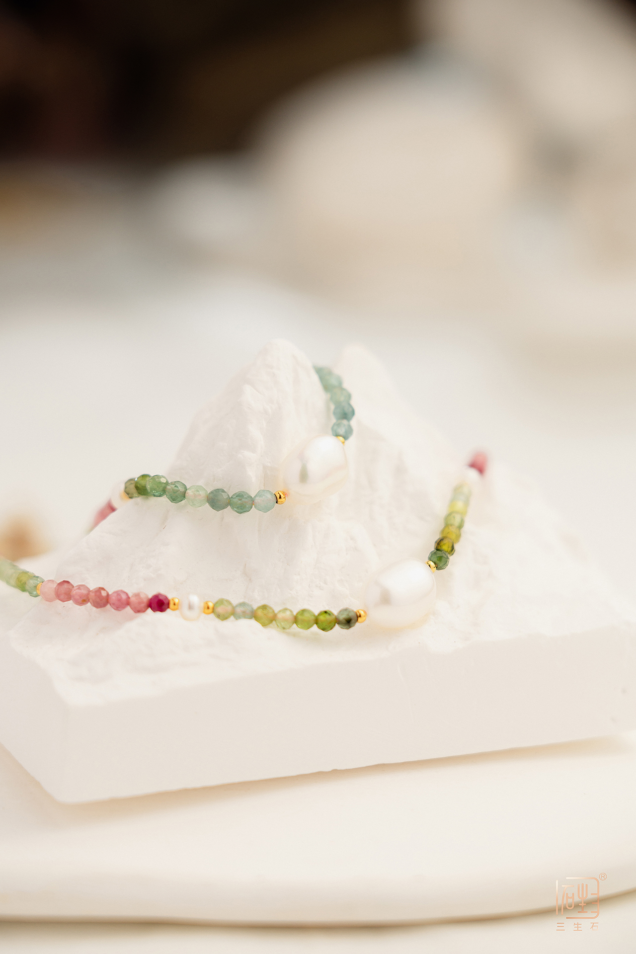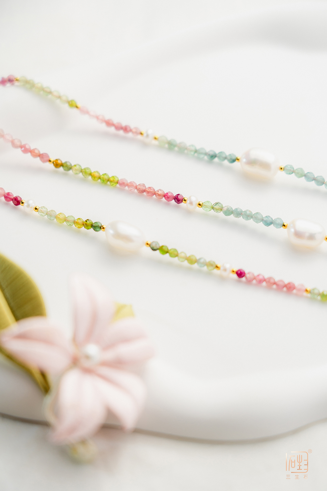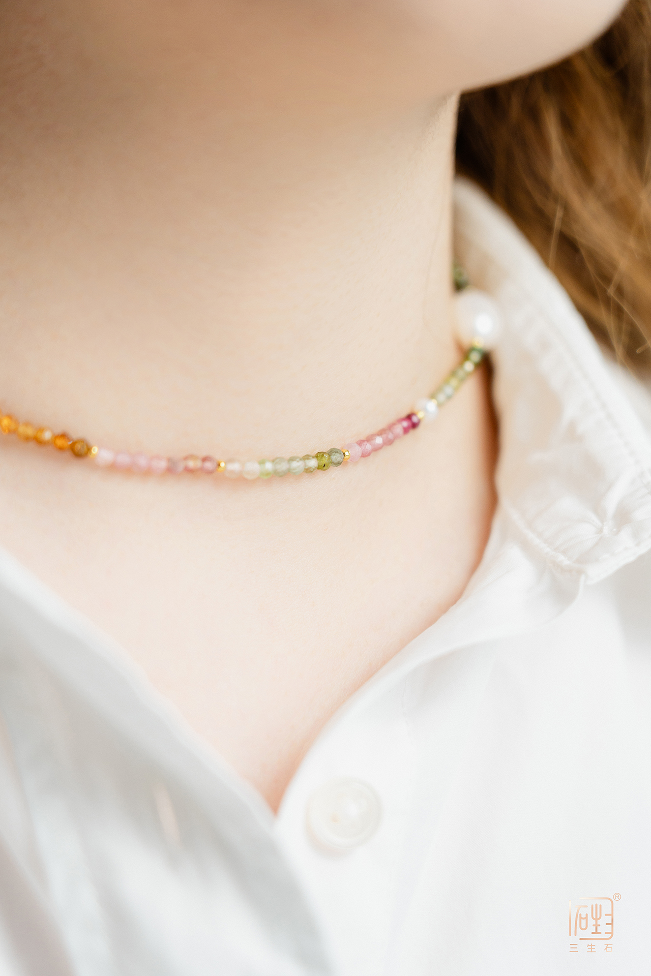 —— 彩色刻面碧玺巴洛克珍珠项链
