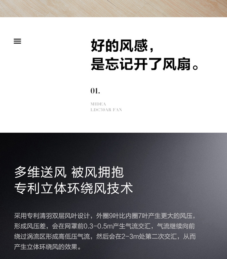 美的(Midea) (509179)电风扇 LDC30AR 智能触屏 双层仿生风叶 12小时定时 落地扇