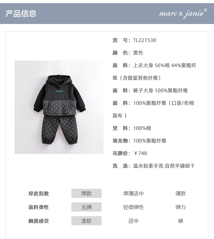 马克珍妮秋冬新款 男童时尚夹棉拼接运动套装221538