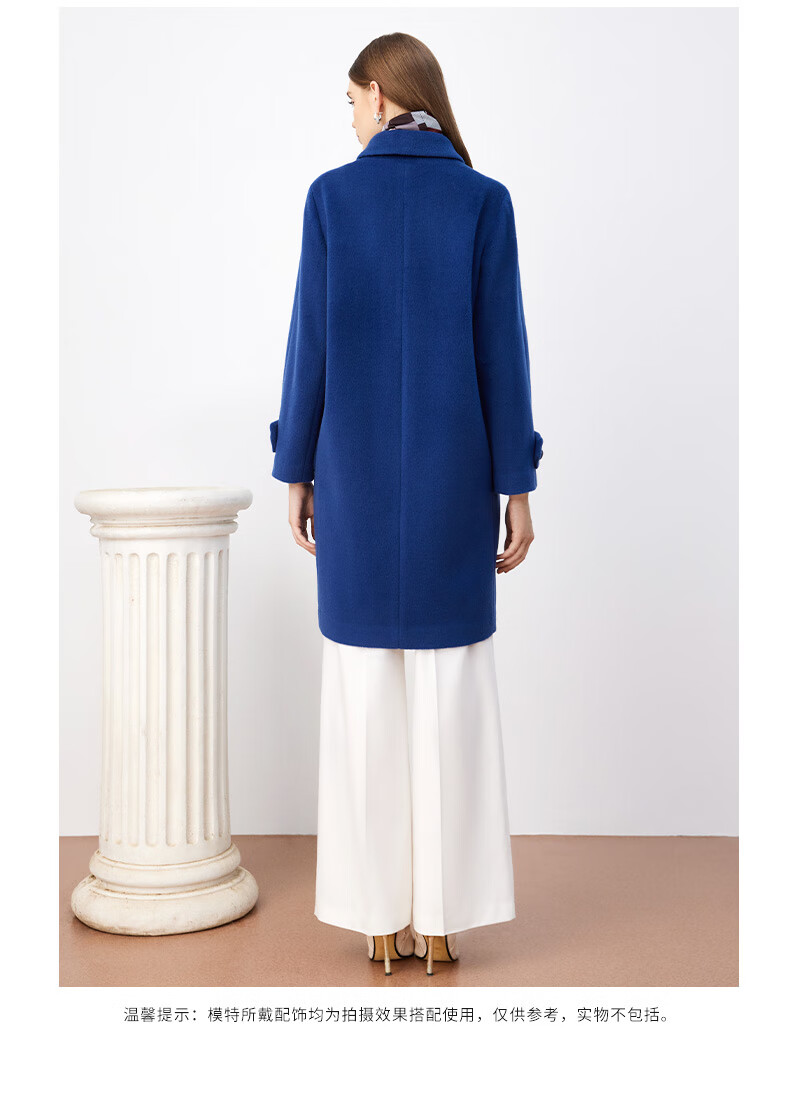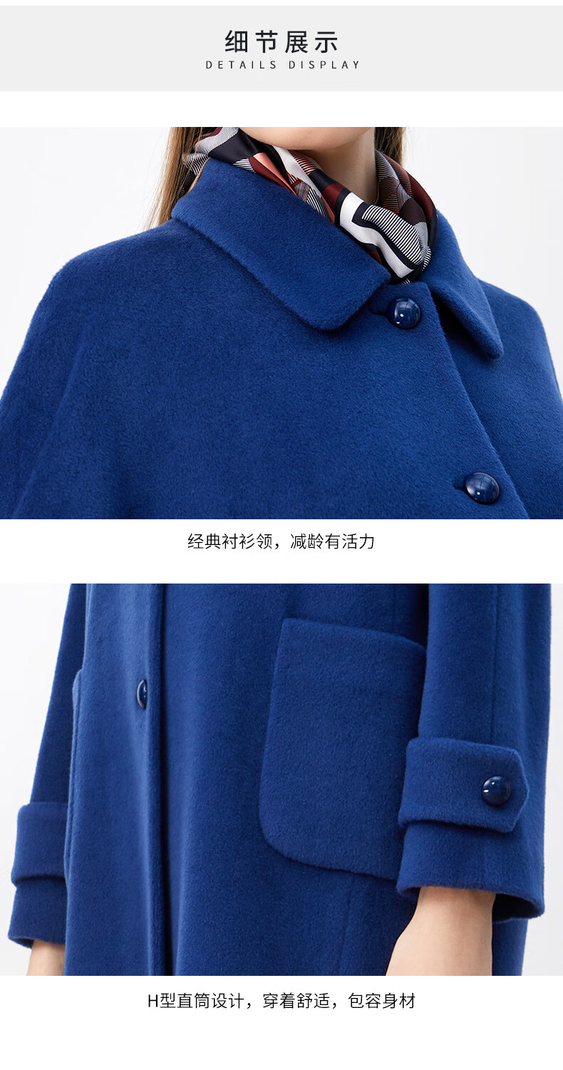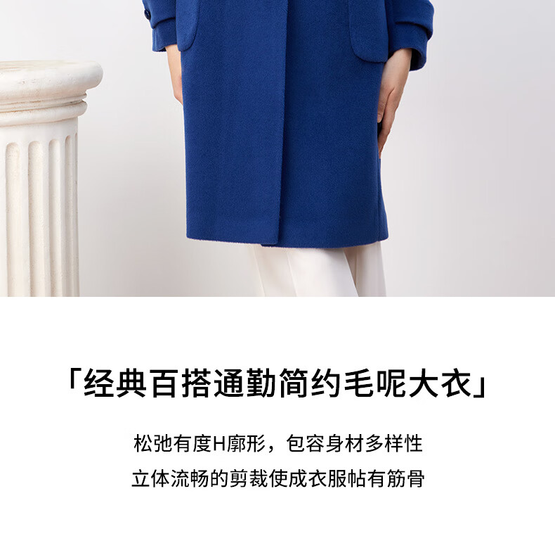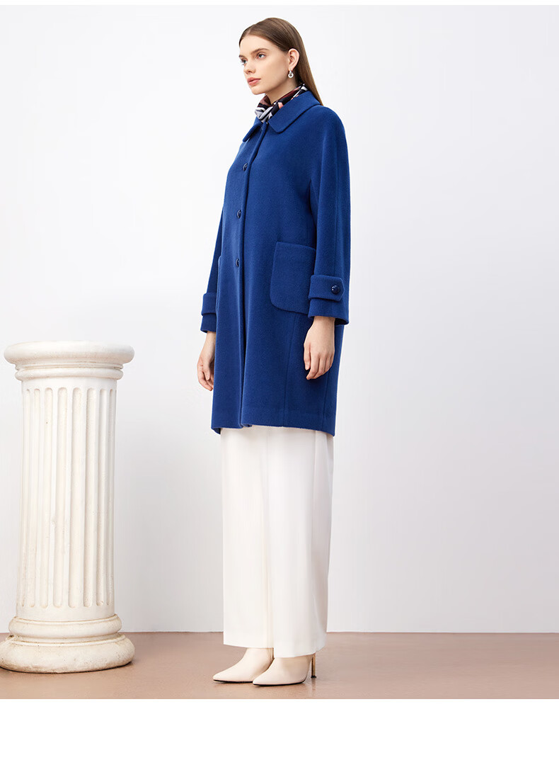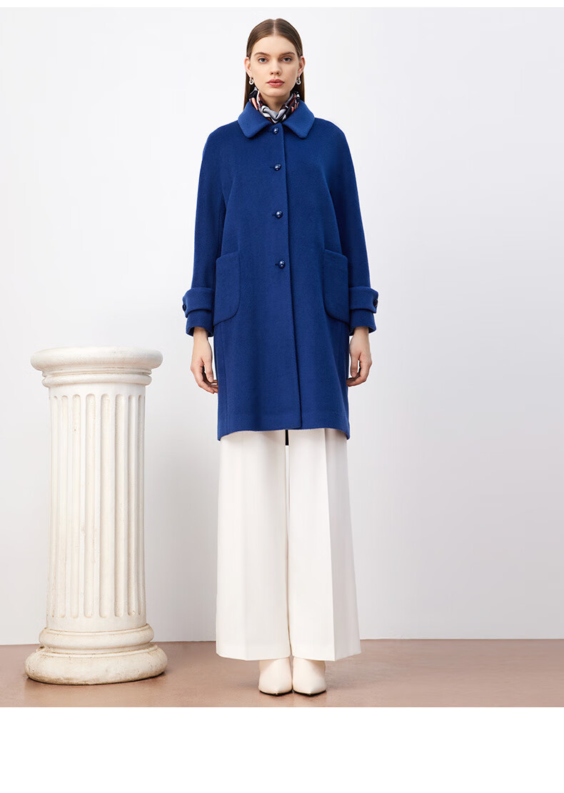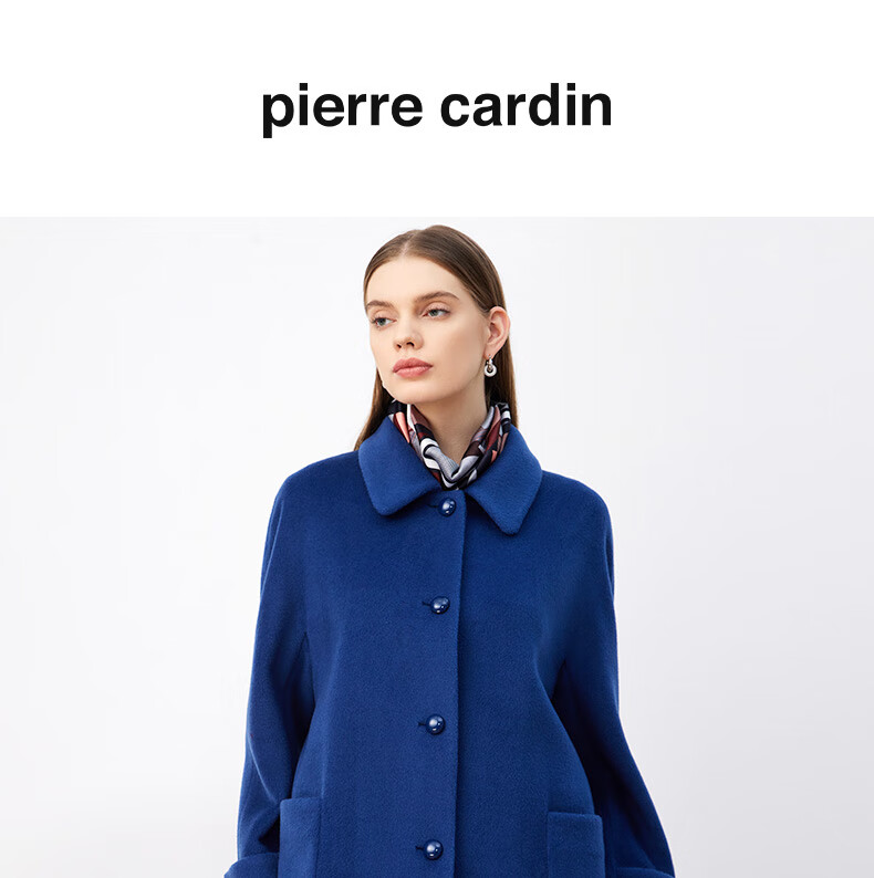皮尔卡丹女装简约宝蓝色直筒通勤减龄气质大衣P3468C3972L0