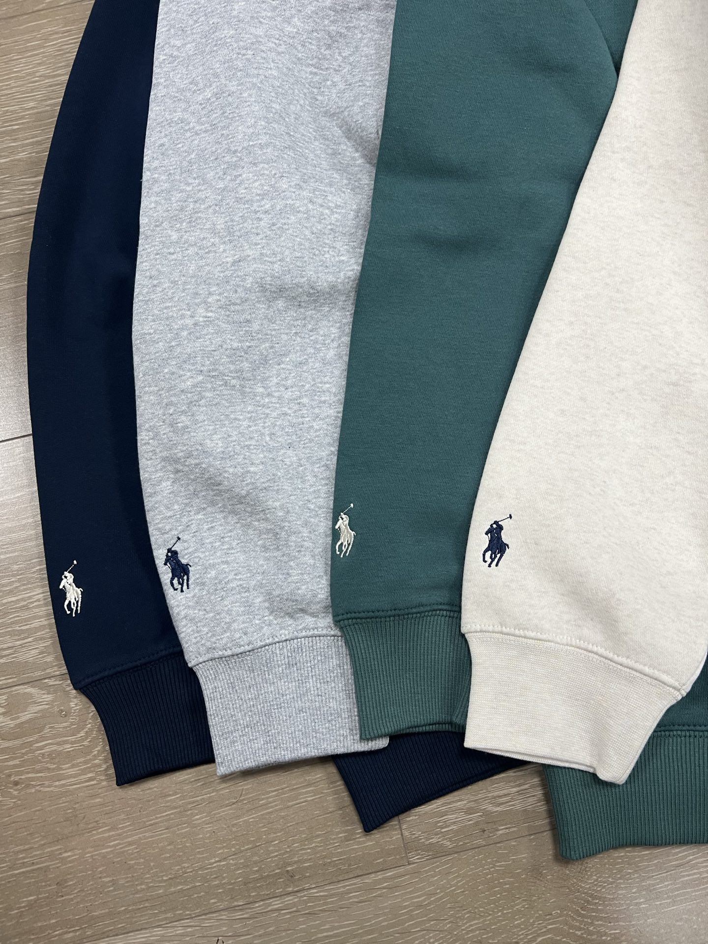 拉夫秋冬加绒新款圆领卫衣,正面精致字母刺绣,袖口小马标刺绣,下摆方标。四色可选代购在售。