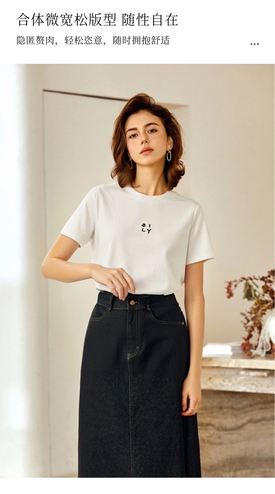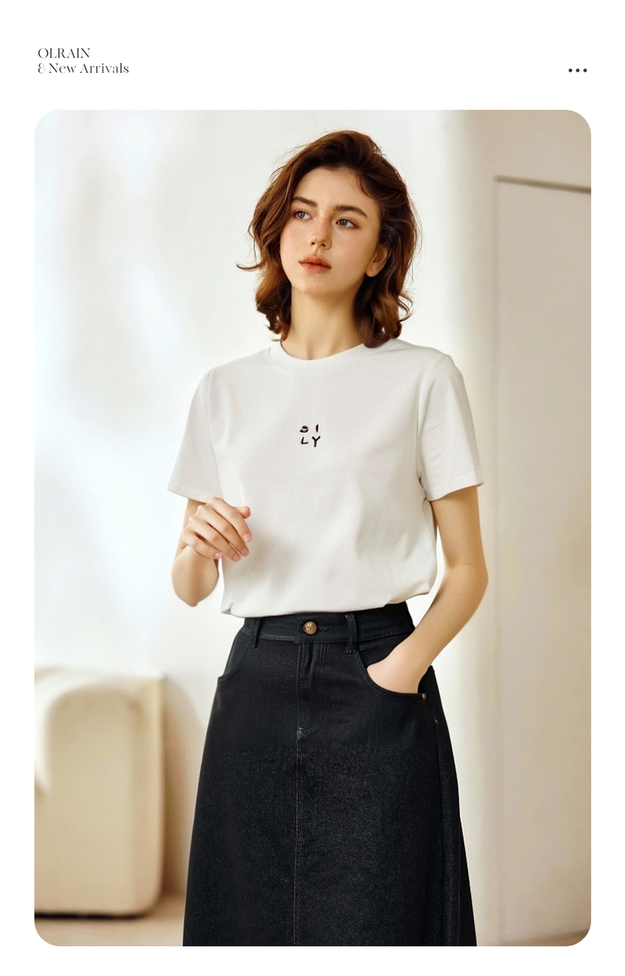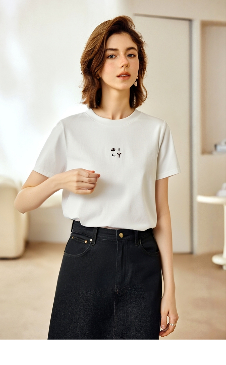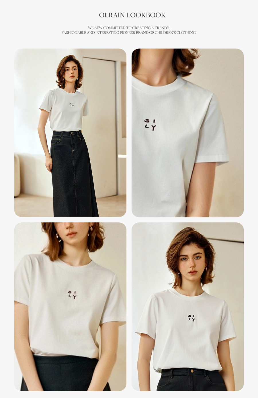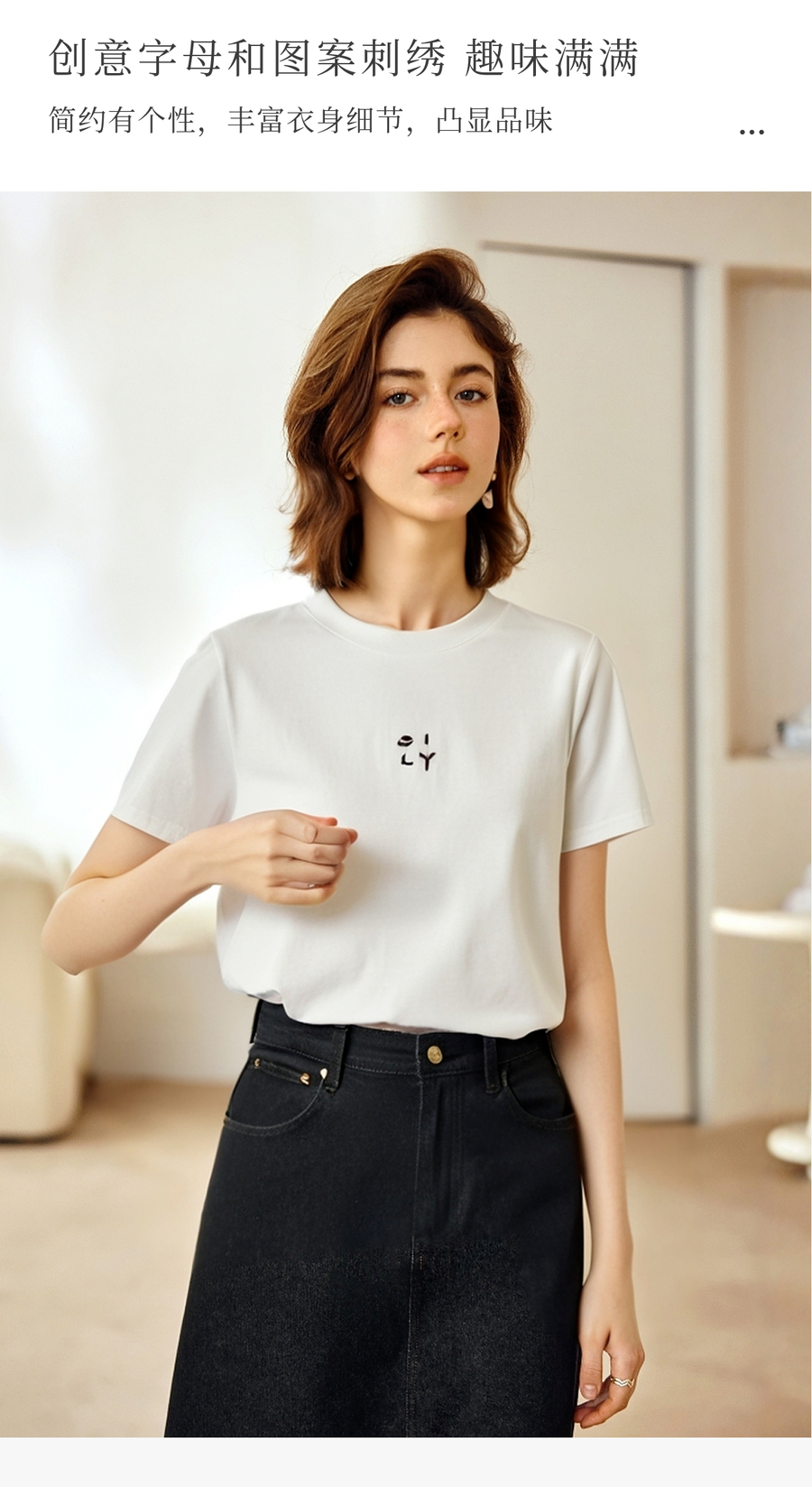OLrain欧芮儿简约白色百搭T恤纯棉刺绣圆领2025夏季新款短袖上衣