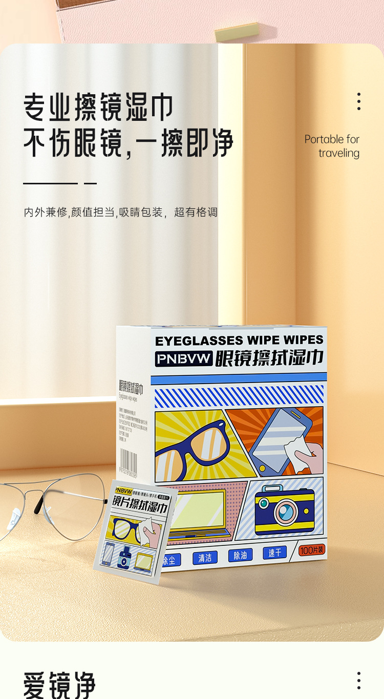 「9.9元包邮!100片独立包装」眼镜湿巾纸 居家日用擦拭镜片清洁去污去油一次性擦眼镜布工具