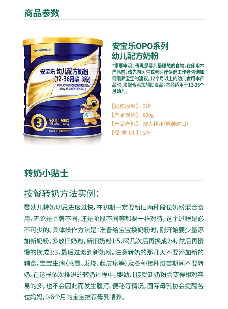 【咨询改价】安宝乐Anbolac澳洲原装进口OPO系列婴儿配方奶粉全段数