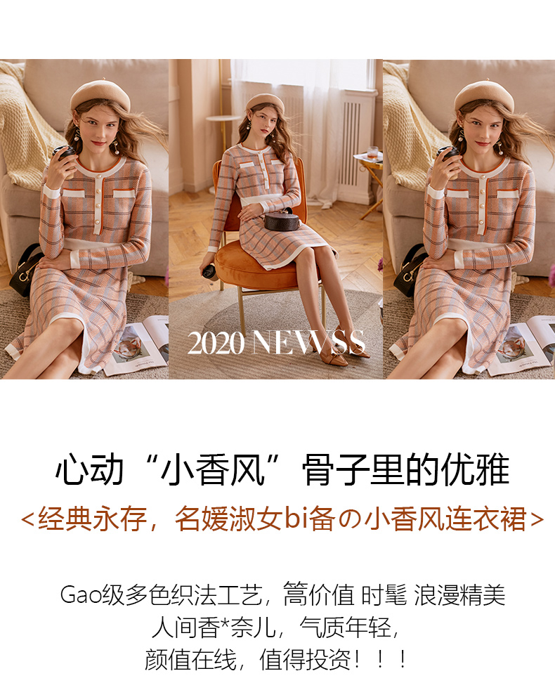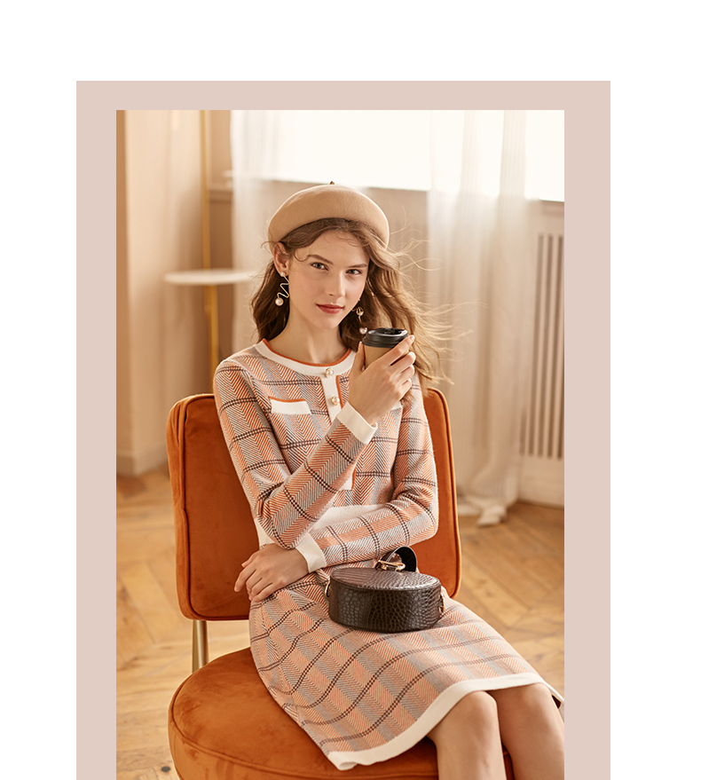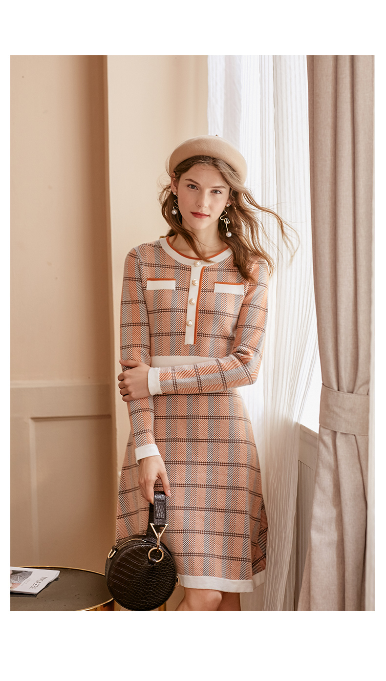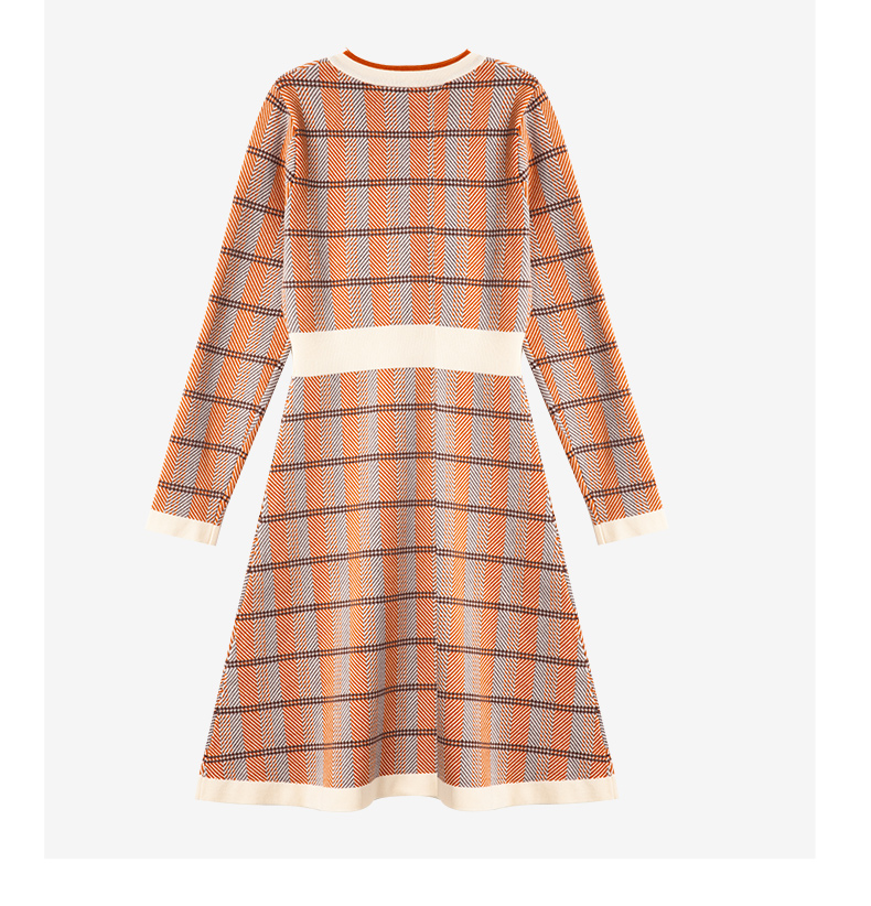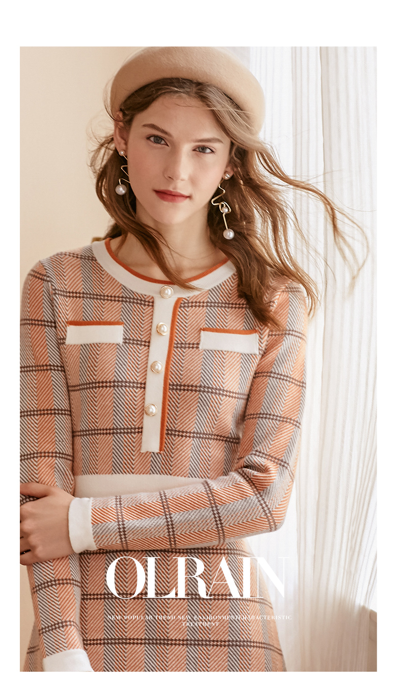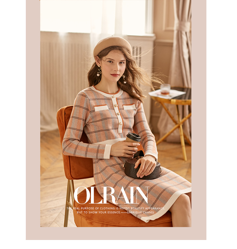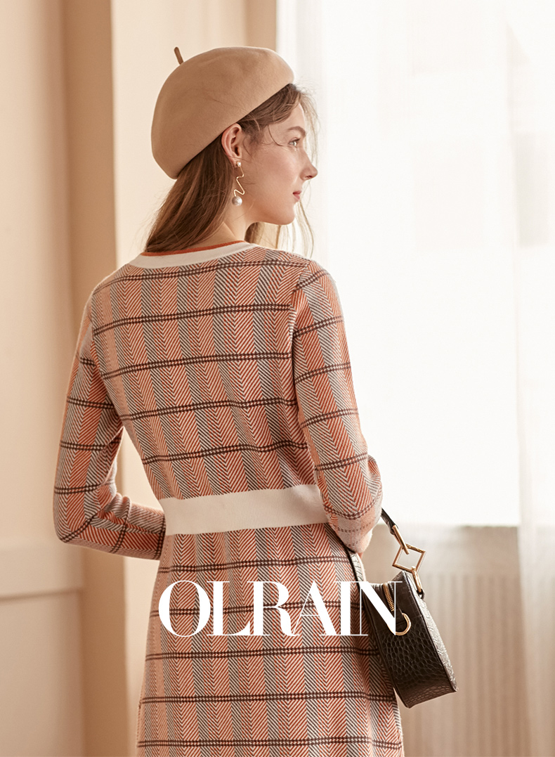 OLrain欧芮儿法式格子针织连衣裙女早春2025年新款收腰小香风裙子