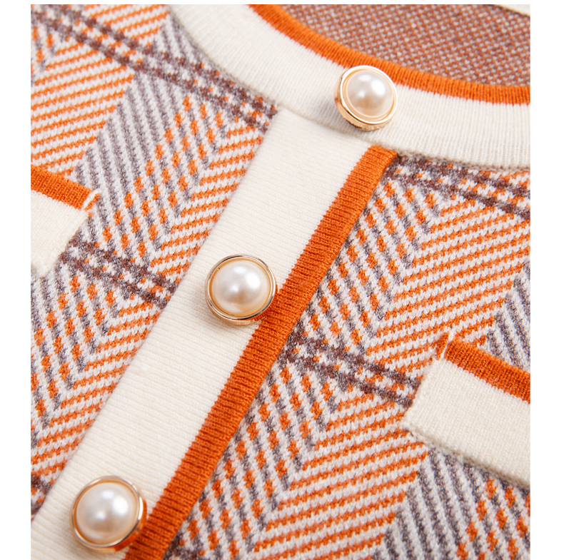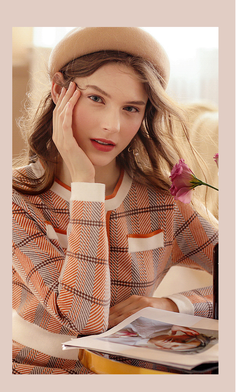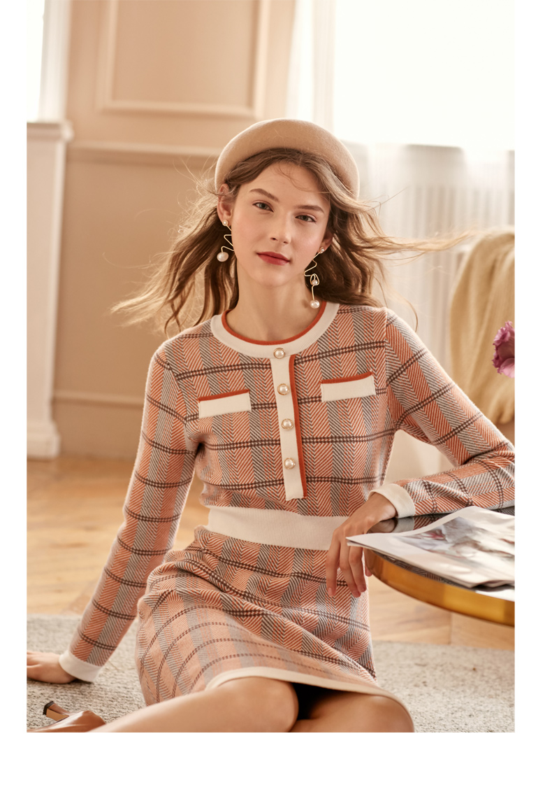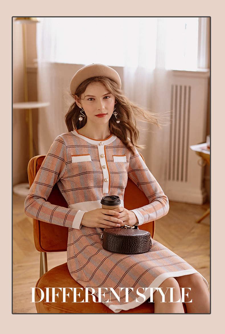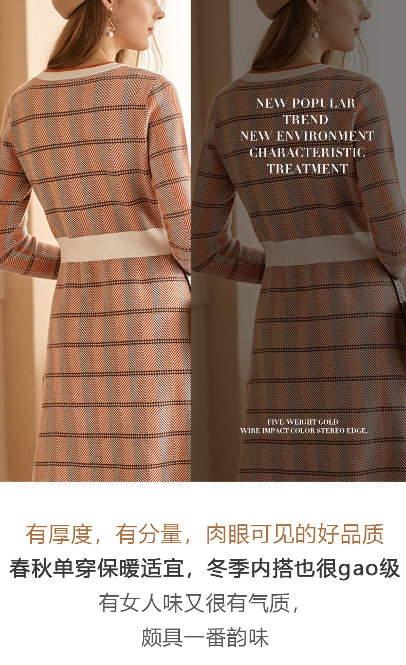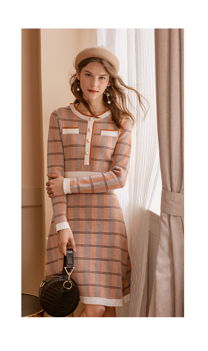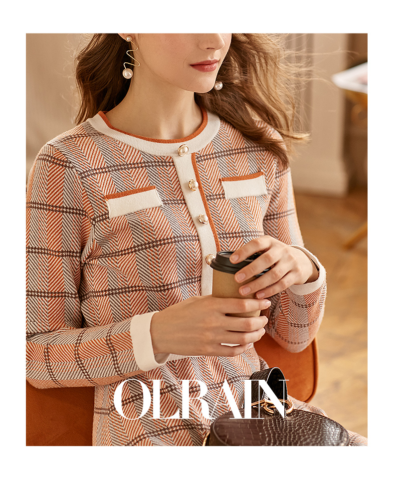 OLrain欧芮儿法式格子针织连衣裙女早春2025年新款收腰小香风裙子