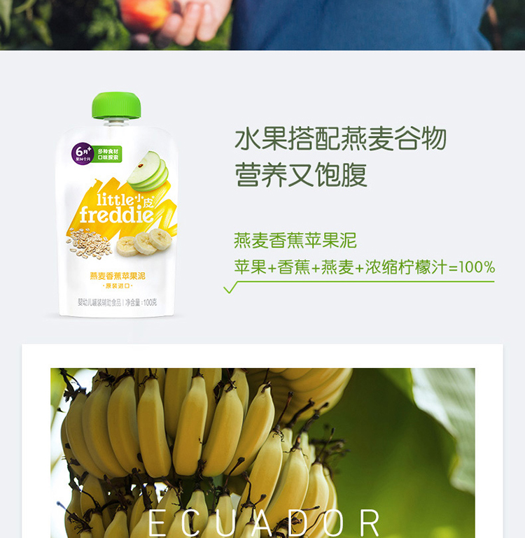 英国little freddie小皮燕麦香蕉苹果泥 100g