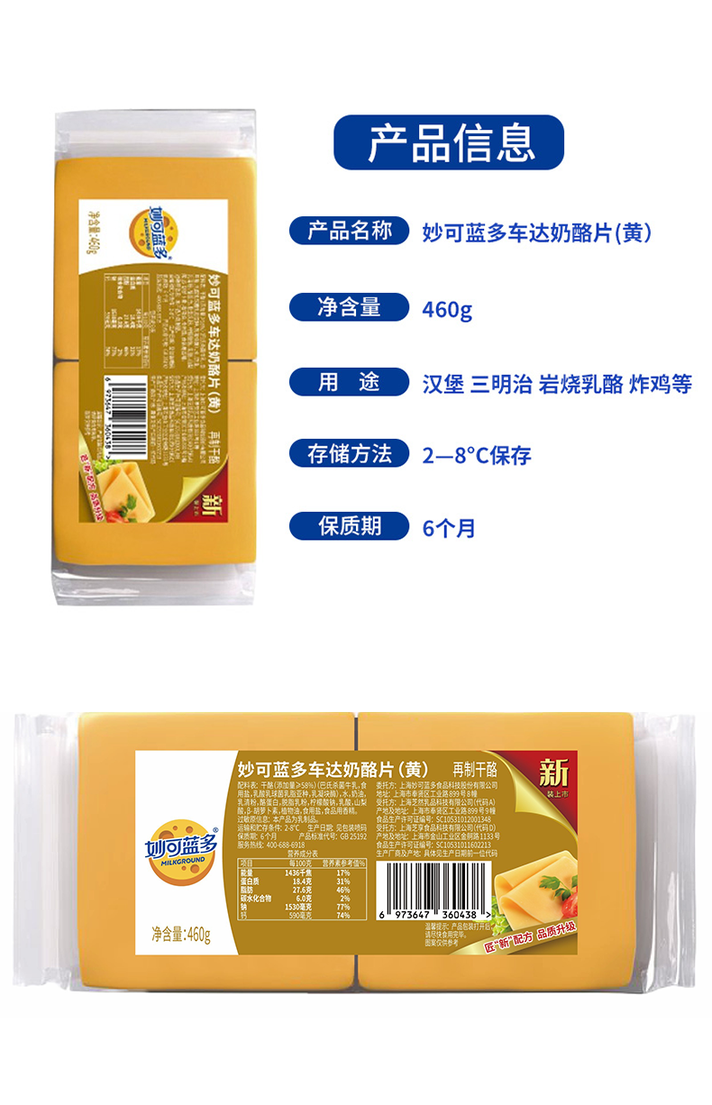 460g(40片) 妙可蓝多 车达奶酪片(黄) 芝士片 汉堡三明治奶酪棒原料