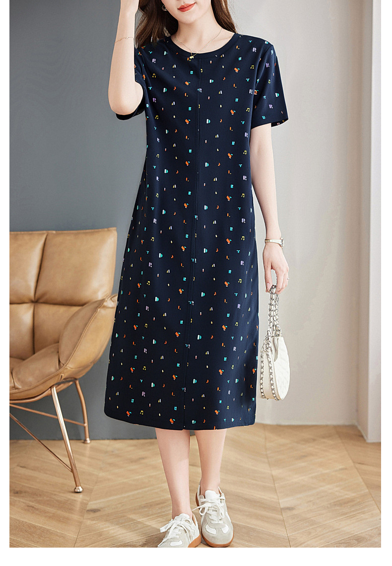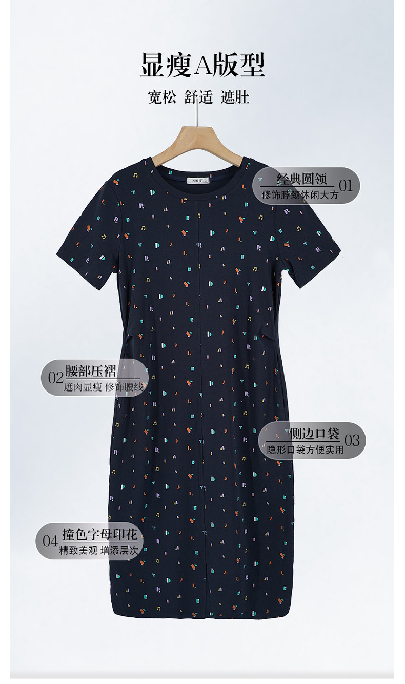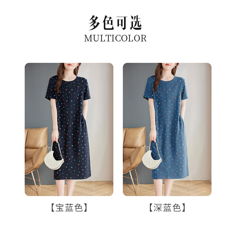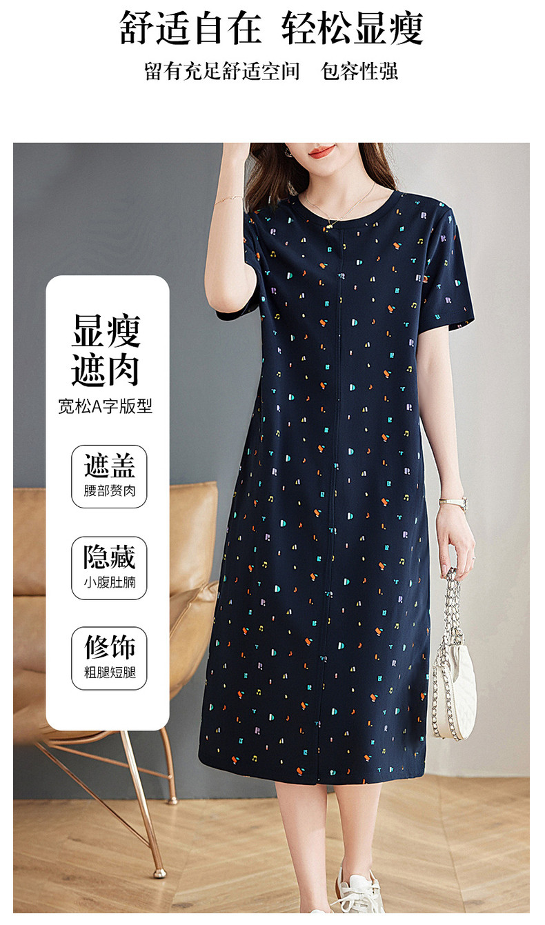 芳妮诗休闲连衣裙女2026新款夏洋气女士纯棉宽松直筒裙子大码女装