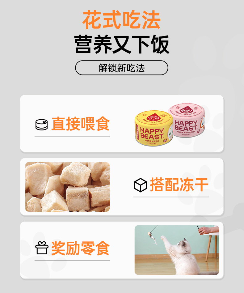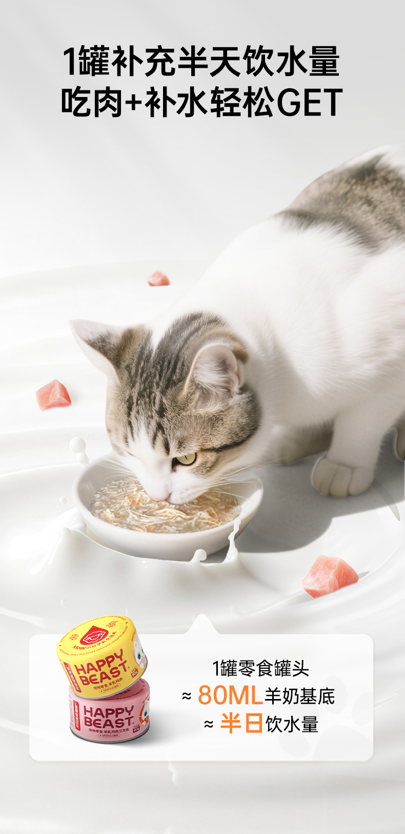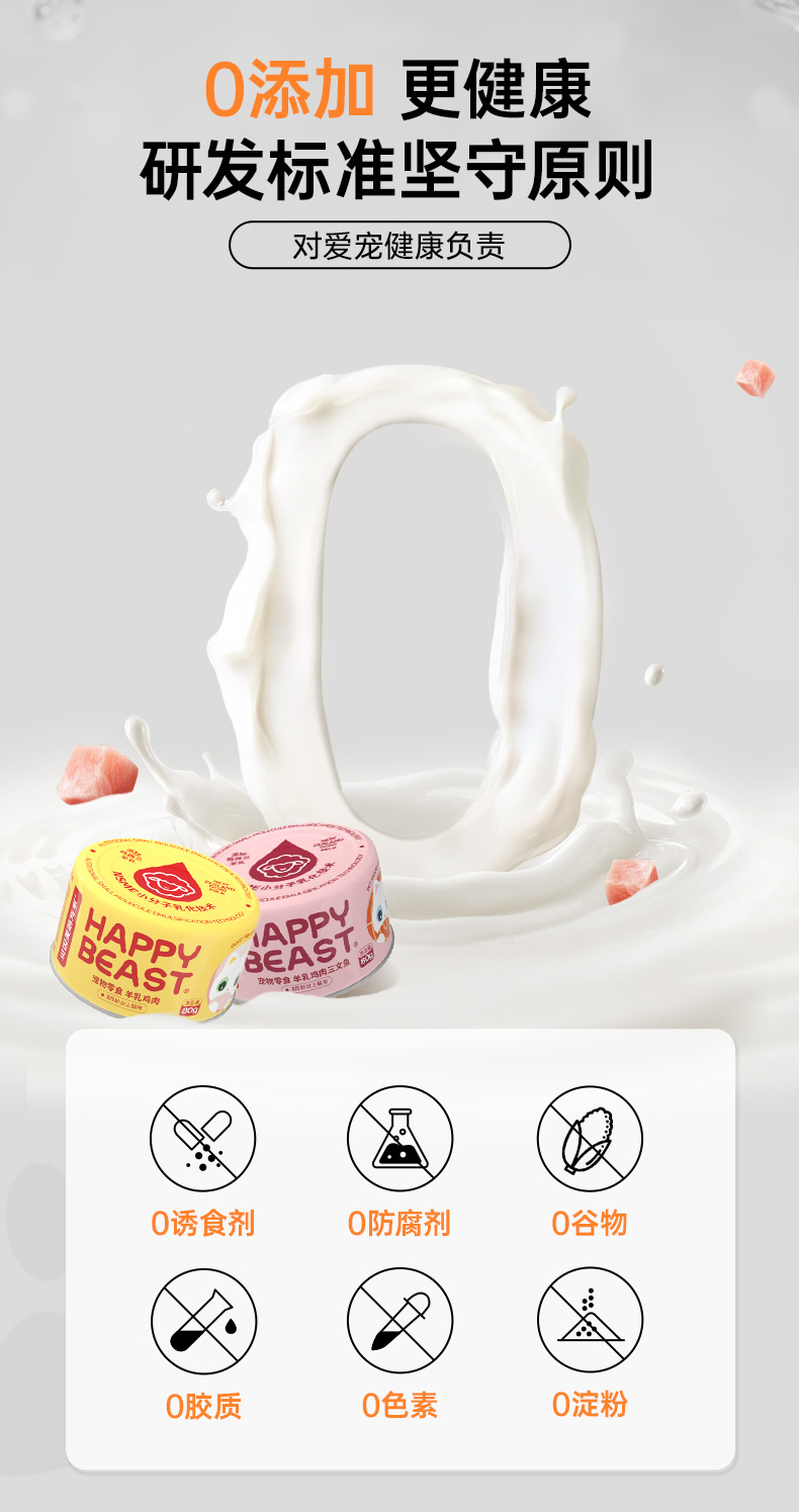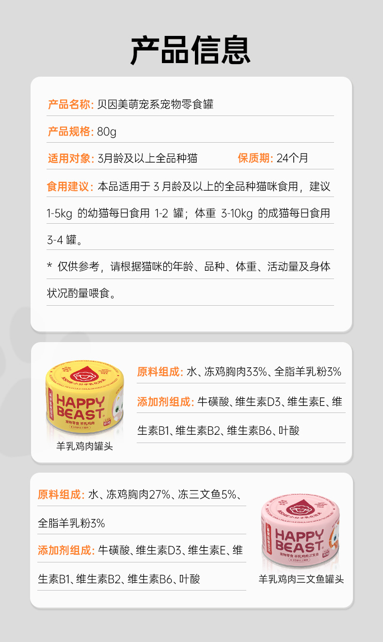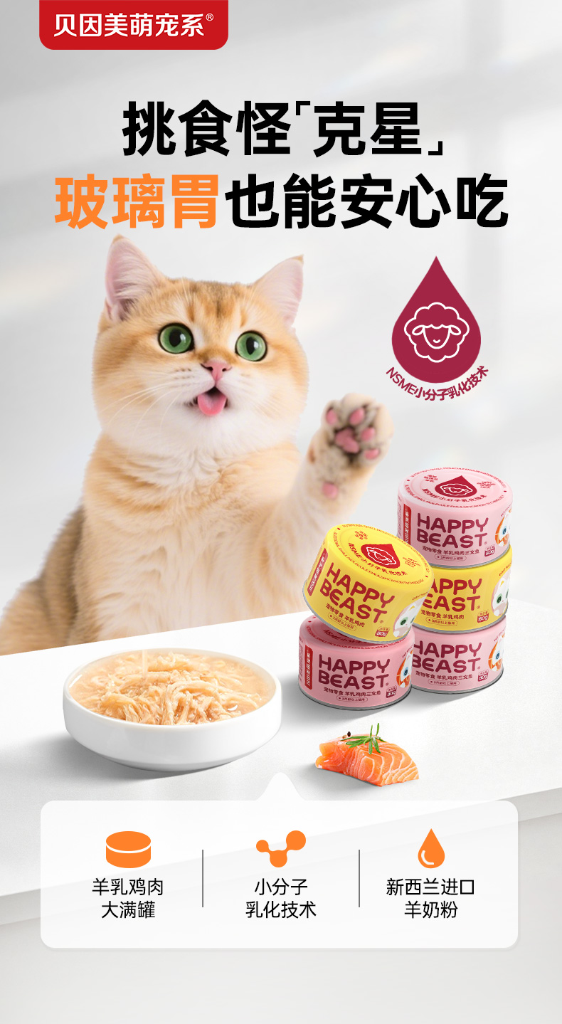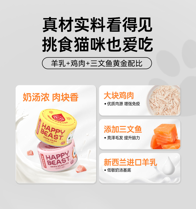 【贝因美萌宠系】HAPPY BEAST宠物零食 猫用罐头*6罐 羊乳鸡肉/羊乳鸡肉三文鱼