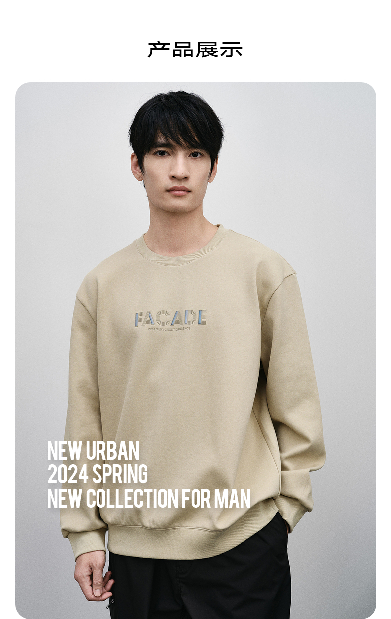 GXG男装 卡其休闲圆领卫衣 2024年春季热卖GFX13100551