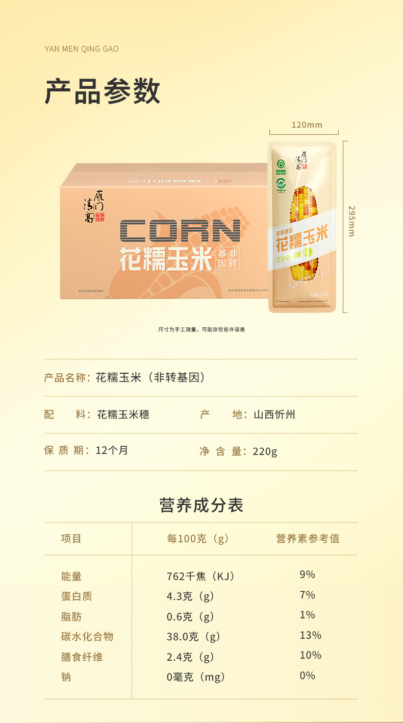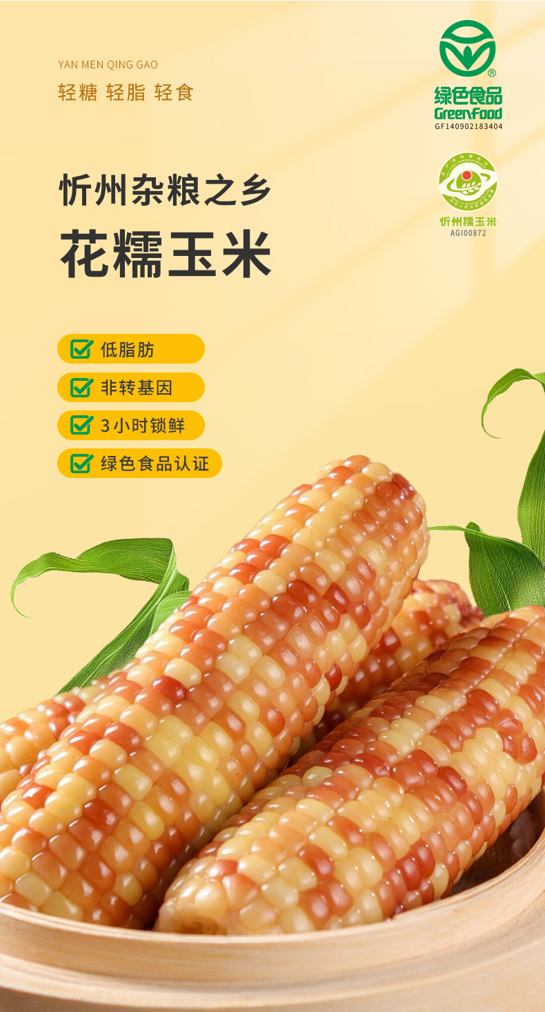 雁门清高花糯玉米220g*8根新鲜真空包装粘香糯甜早餐糯玉米棒