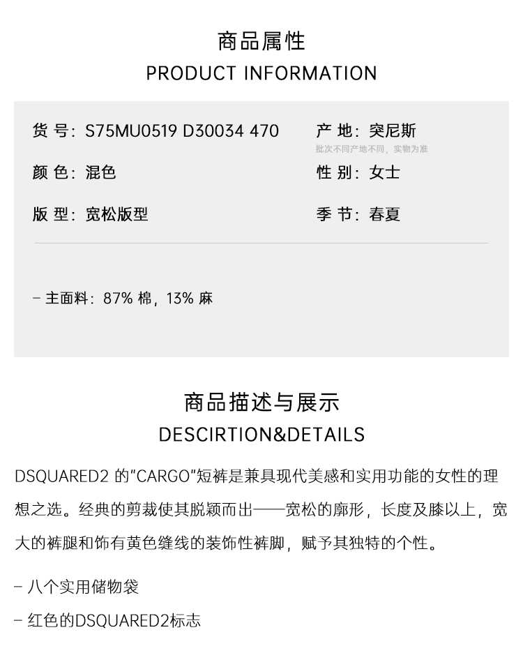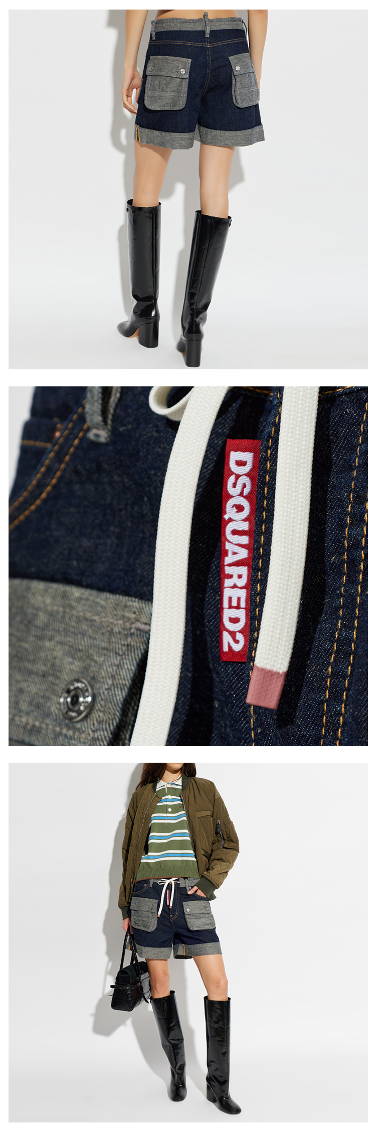 DSQUARED2 女士字母徽标标签“工装”牛仔短裤 混色 S75MU0519 D30034 470