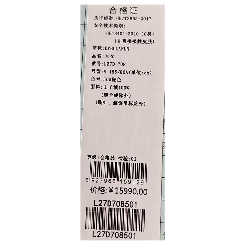 戴布拉芬呢大衣L27D708