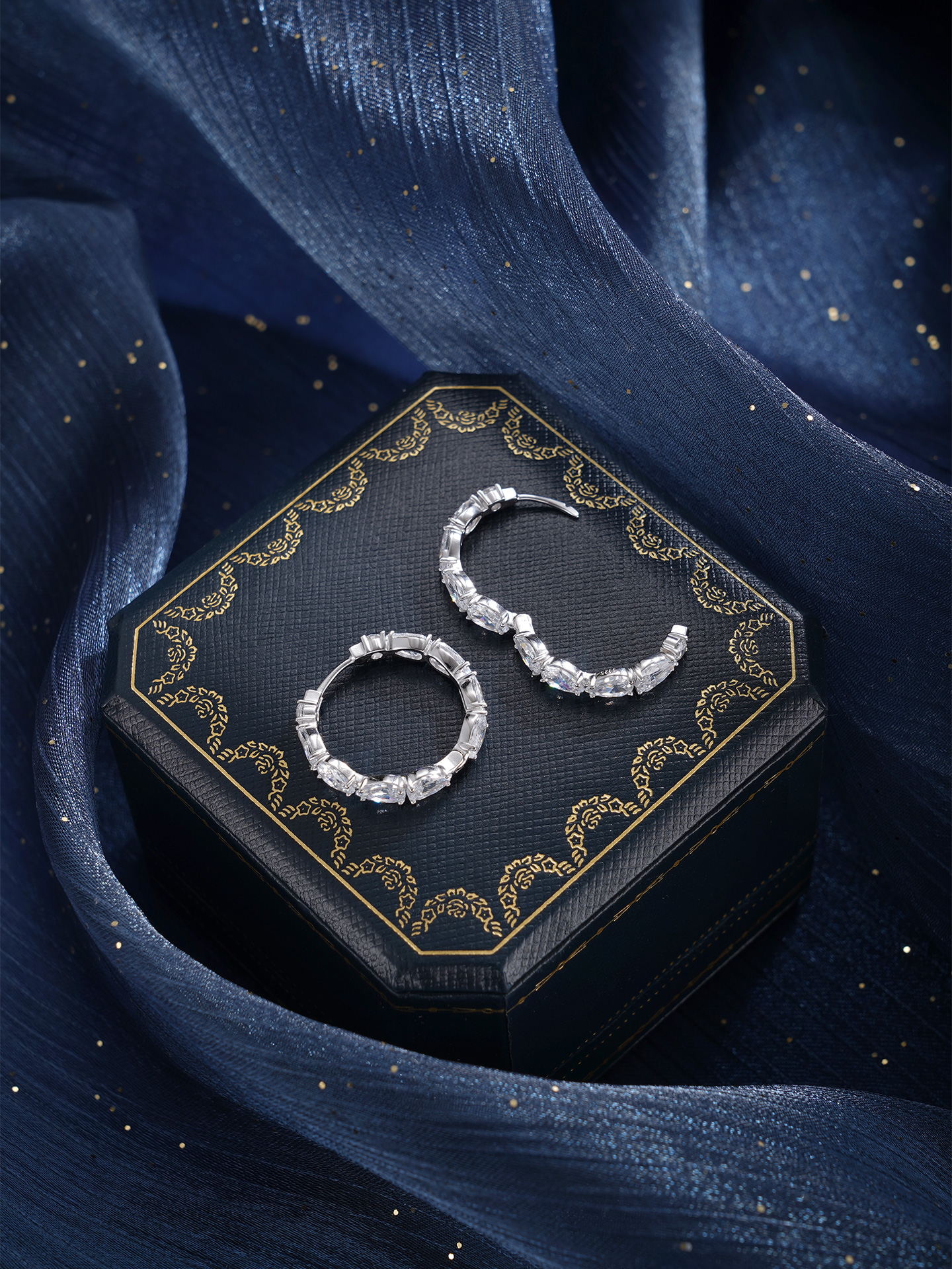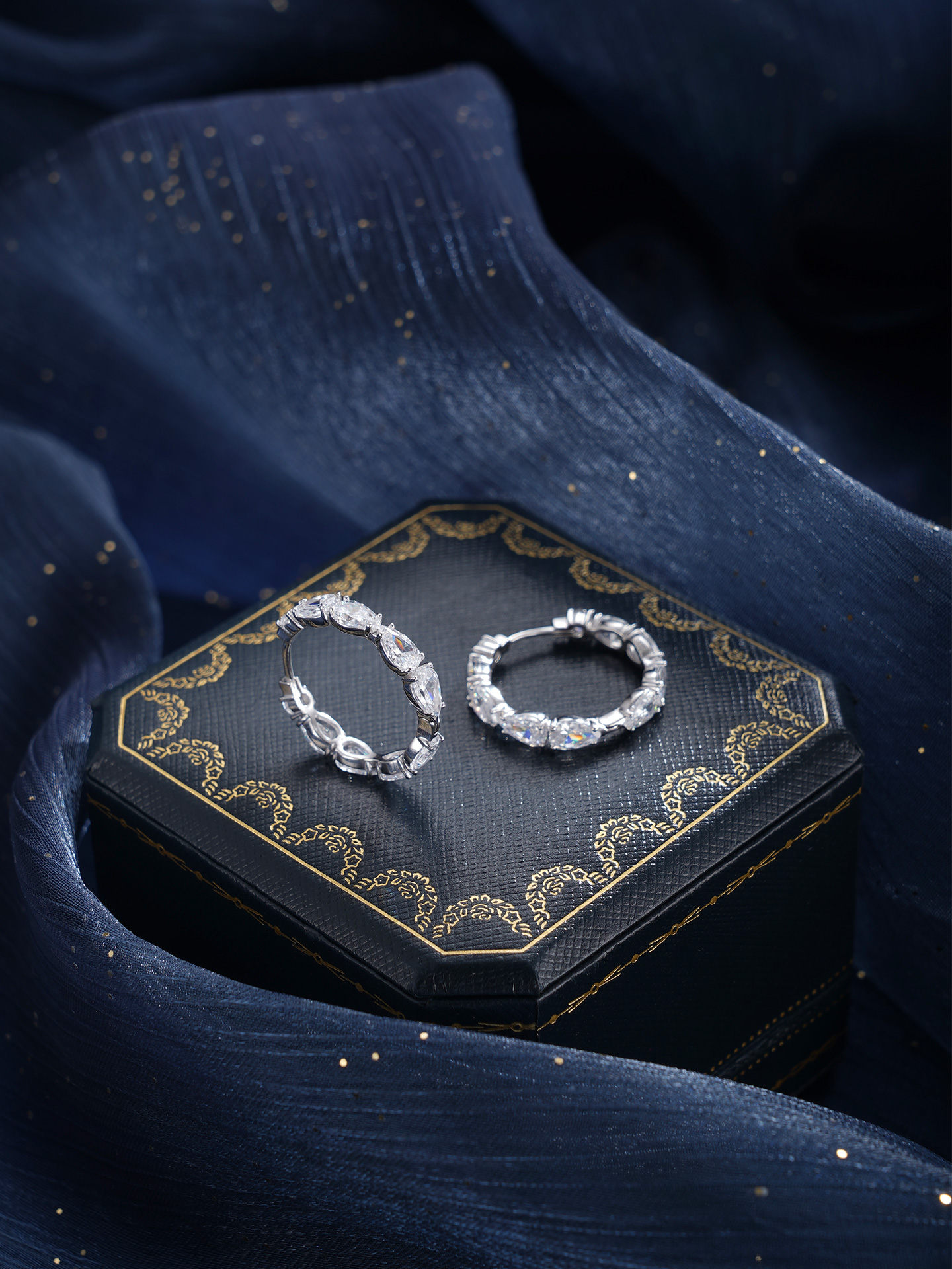 【寓意】:经典圆环耳扣,巧妙通过微镶工艺,塑造波光粼粼质感,寓意魅力流转不息。