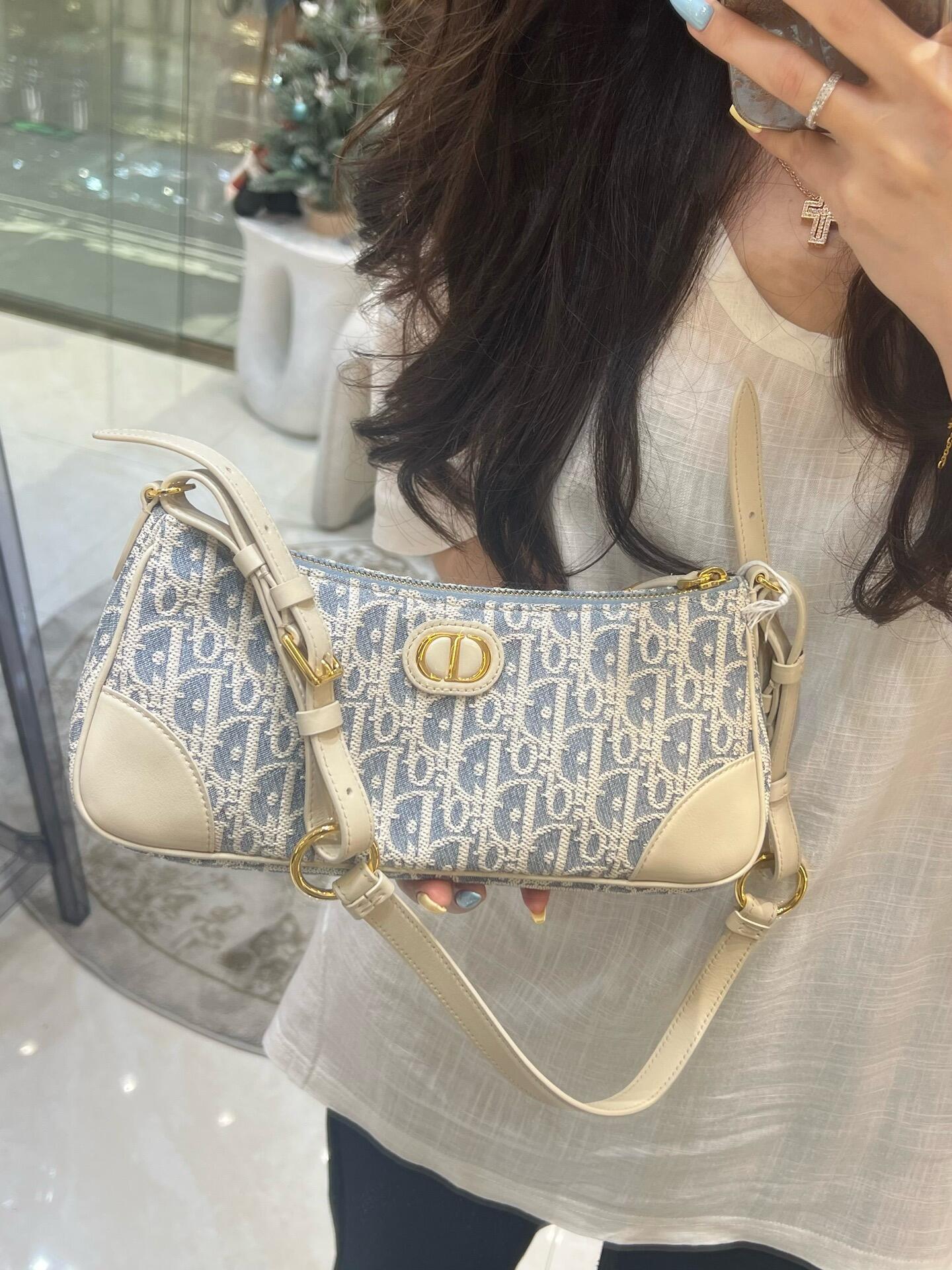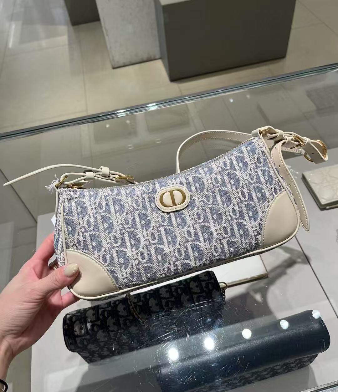 顶级免税版 VIP专柜体验 收到即官网同样 首发全新上市 迪奥Dior Hobo腋下包 刺绣老花拼牛皮