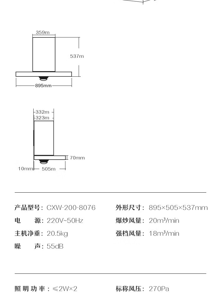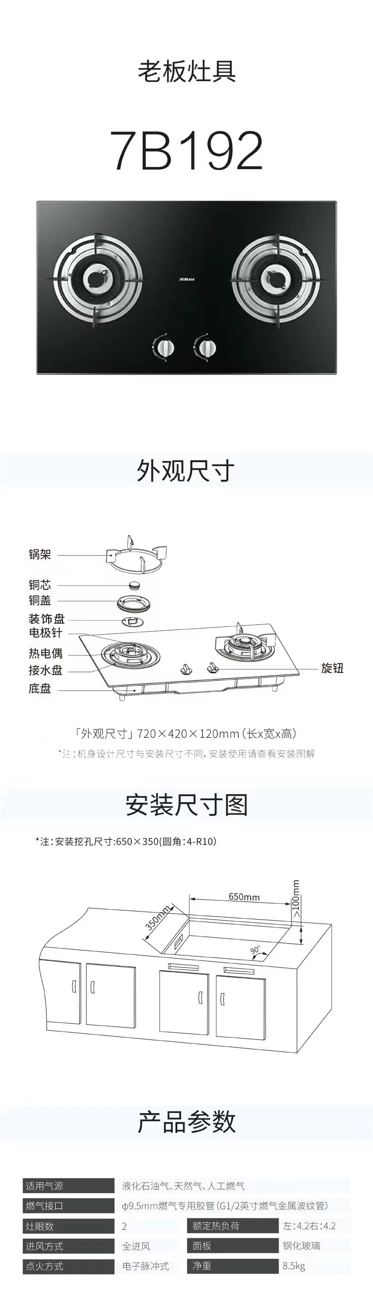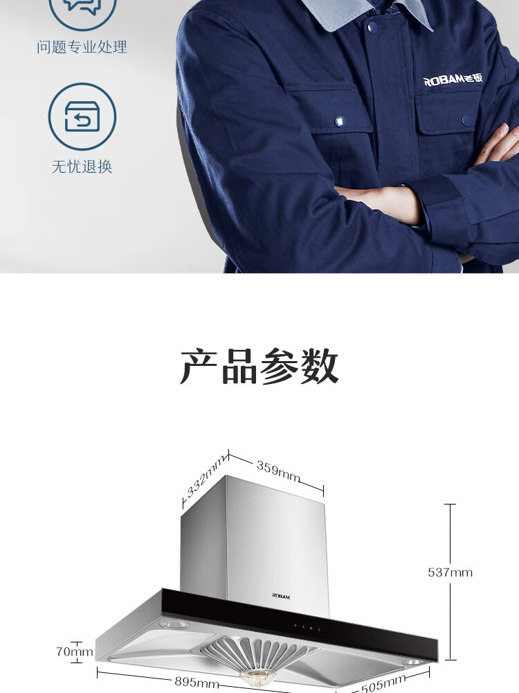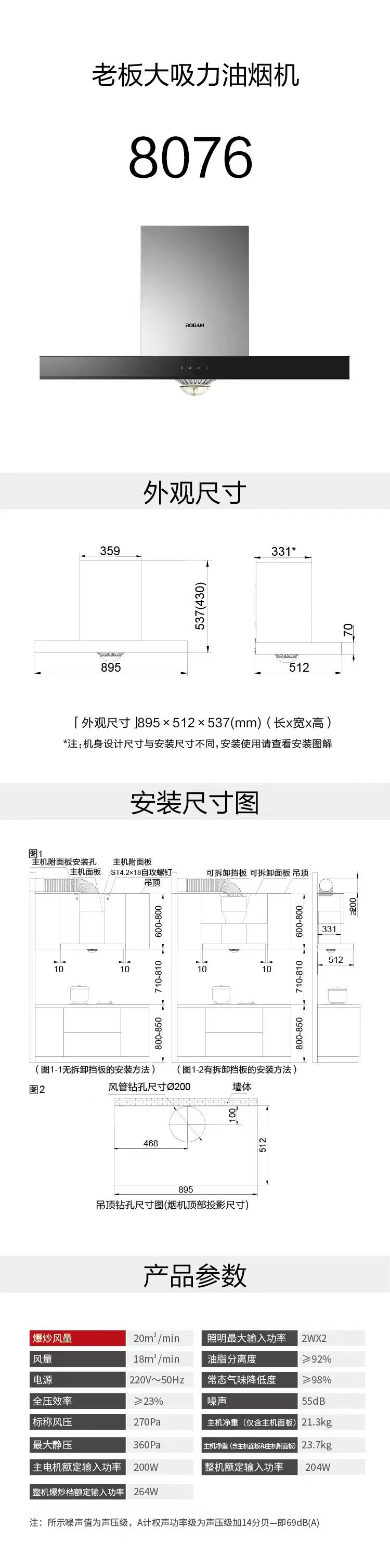 老板老板 (Robam)烟灶套装 20立方大风量欧式抽油烟机8076+7B192 聚中劲火燃气灶