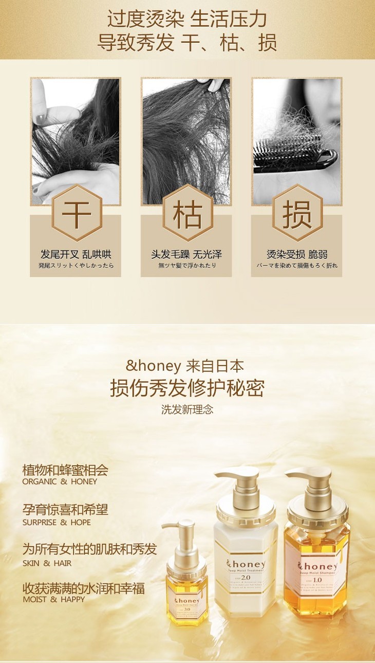 安蒂花子水感丰盈滋养洗发水 440ml 蜂蜜版 改善毛躁染烫分叉控油蓬松柔顺