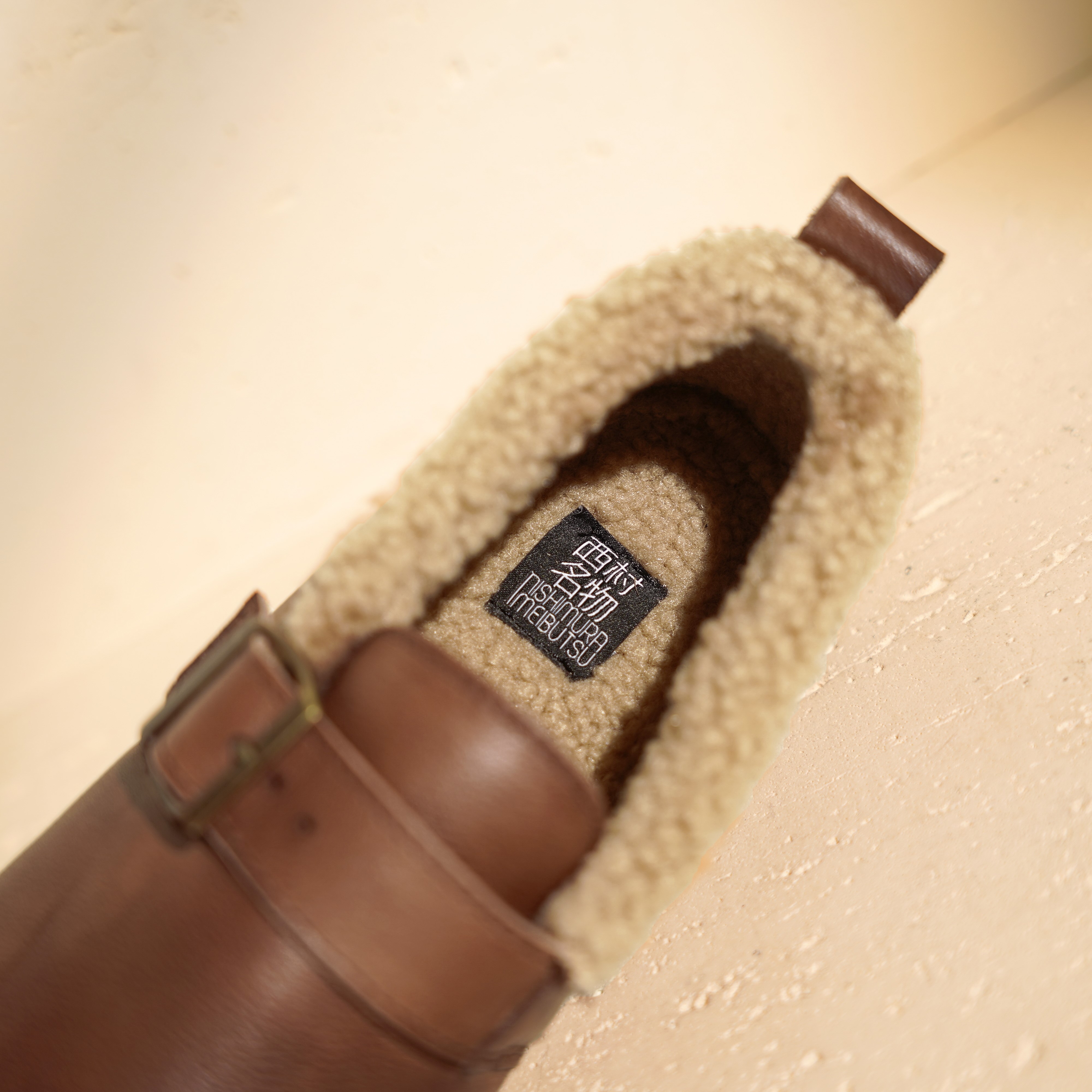 西村名物2025年冬季新款舒软平底加绒内底保暖勃肯鞋T25DM49081