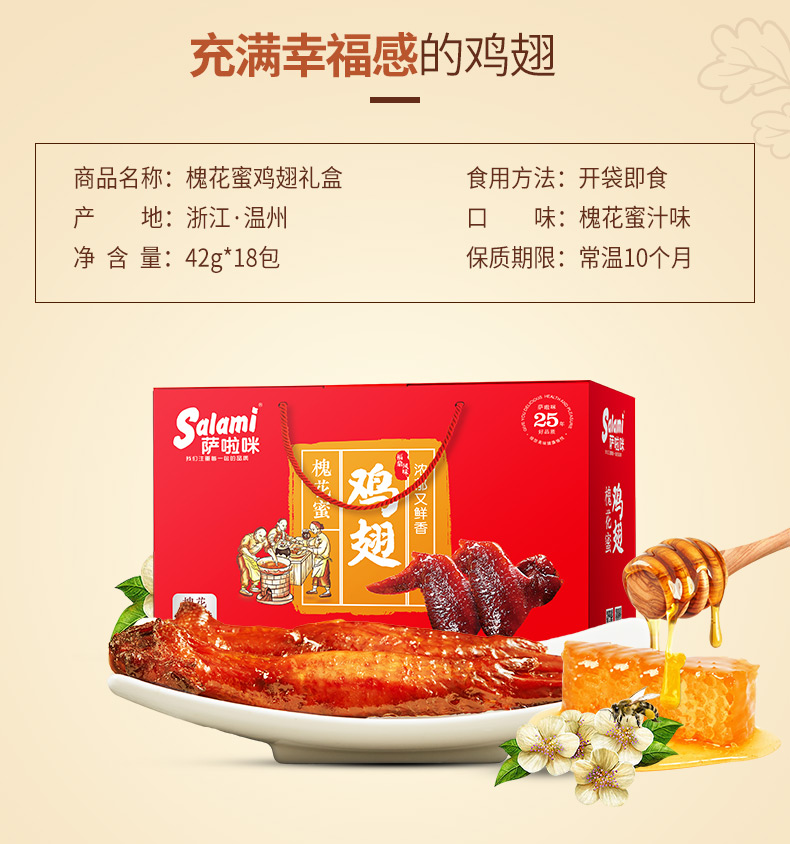 萨啦咪槐花蜜汁味烤鸡翅42g 温州特产休闲零食即食熟食烤全翅小吃