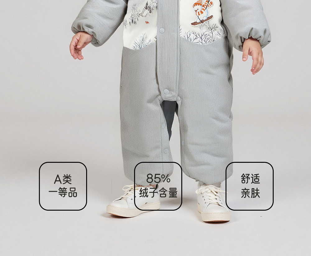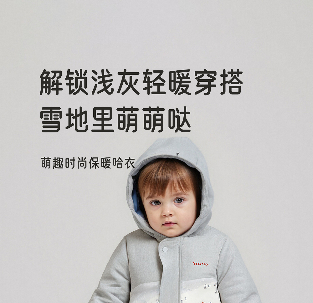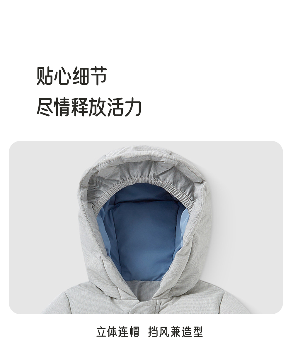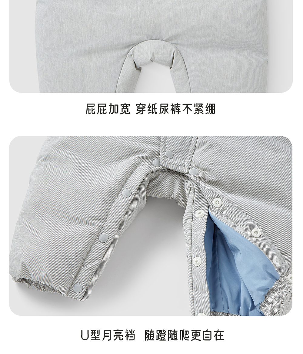 英氏婴儿羽绒连体衣冬保暖休闲户外风连帽哈衣超韧绒YRHFJ4R054A