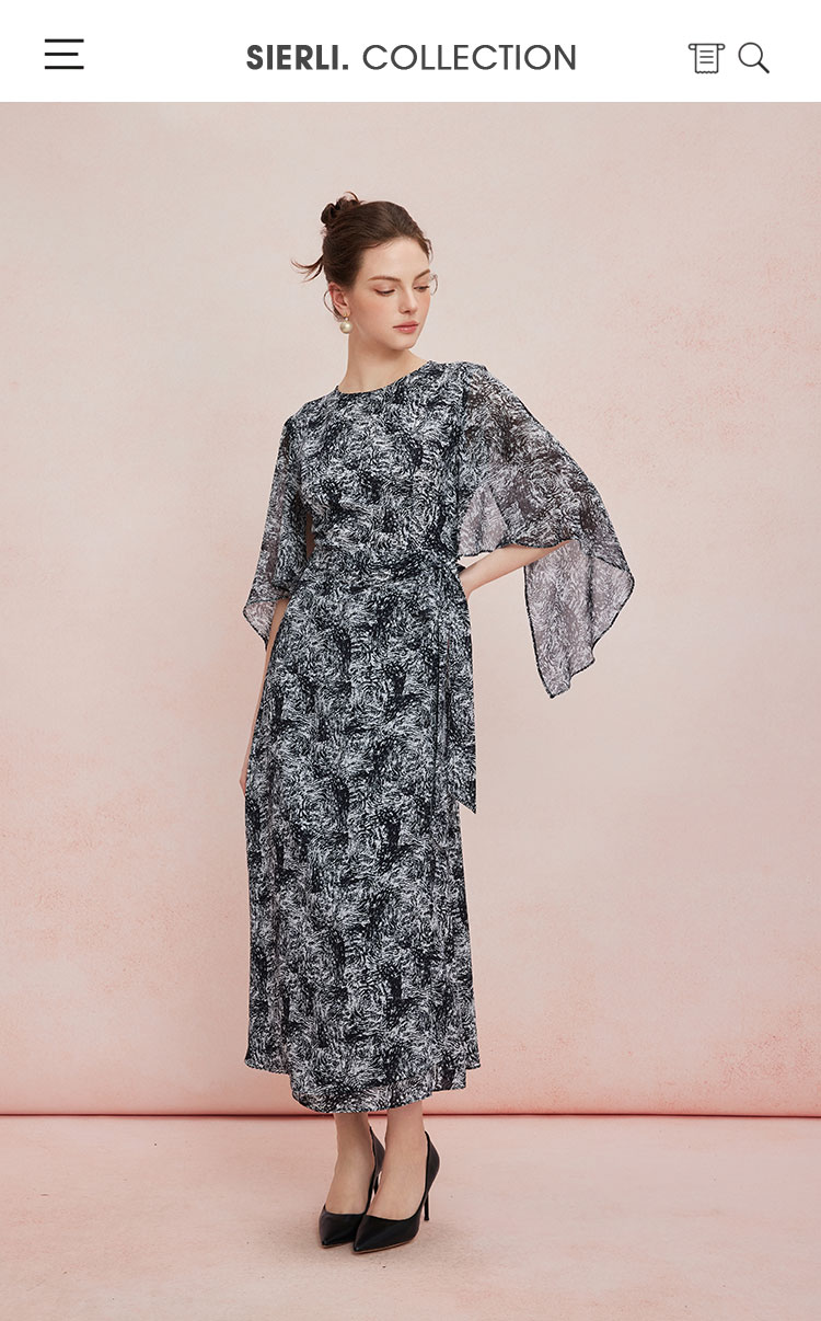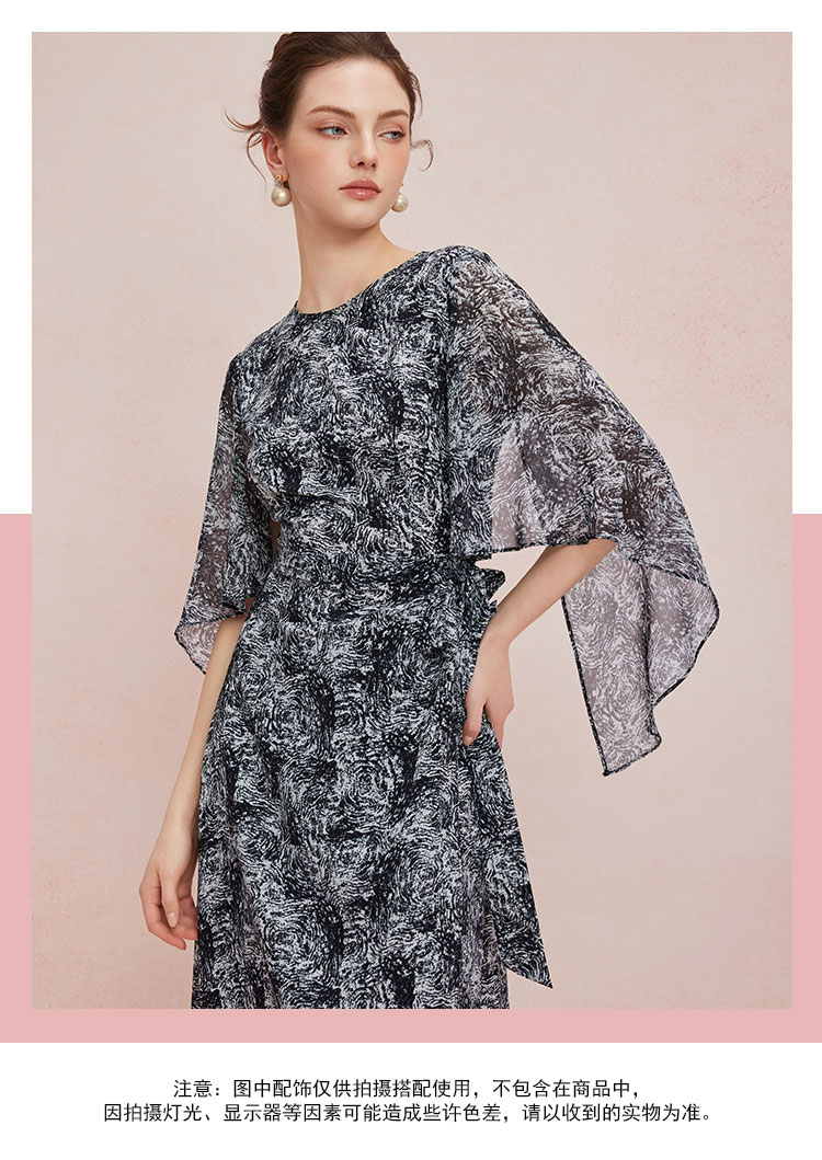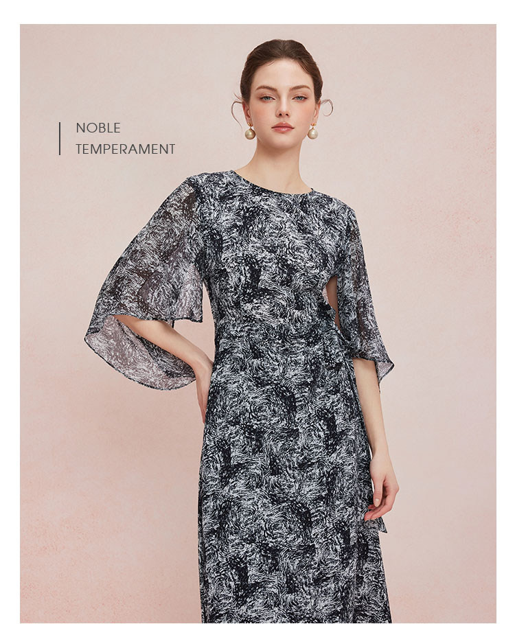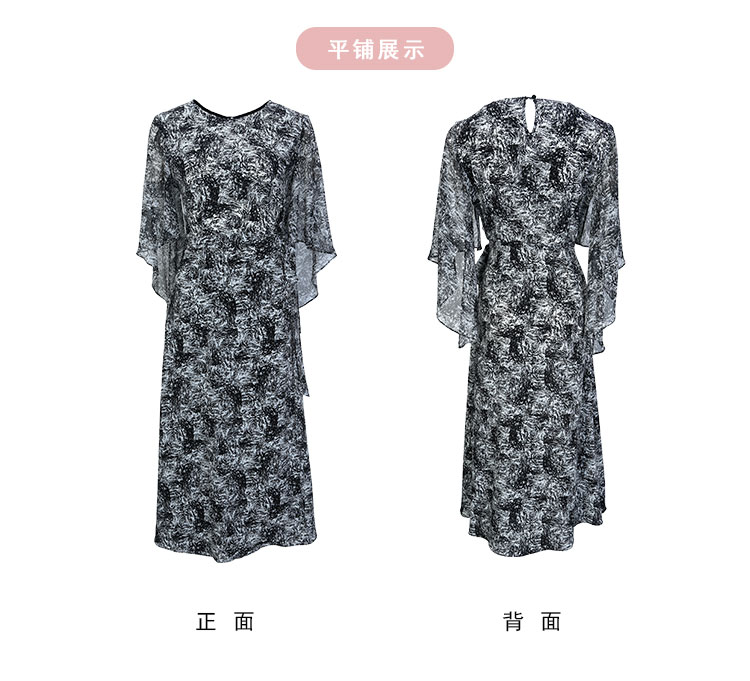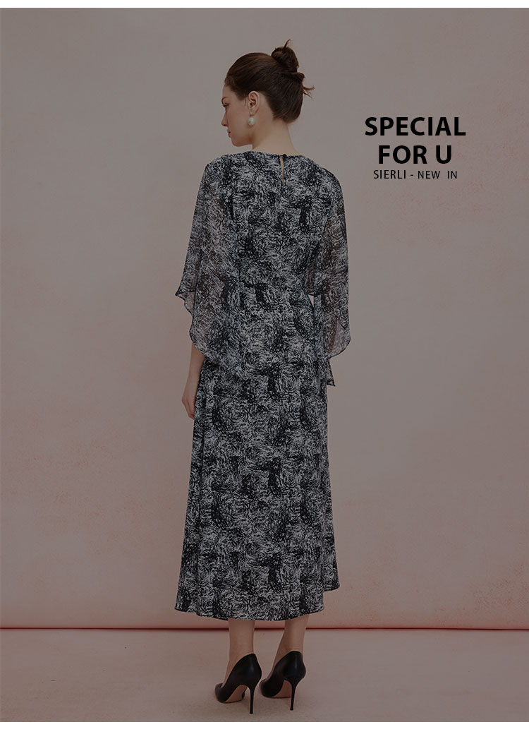 QF867斯尔丽2025夏季新款设计感抛袖下摆裹裙法式碎花显瘦高连衣裙