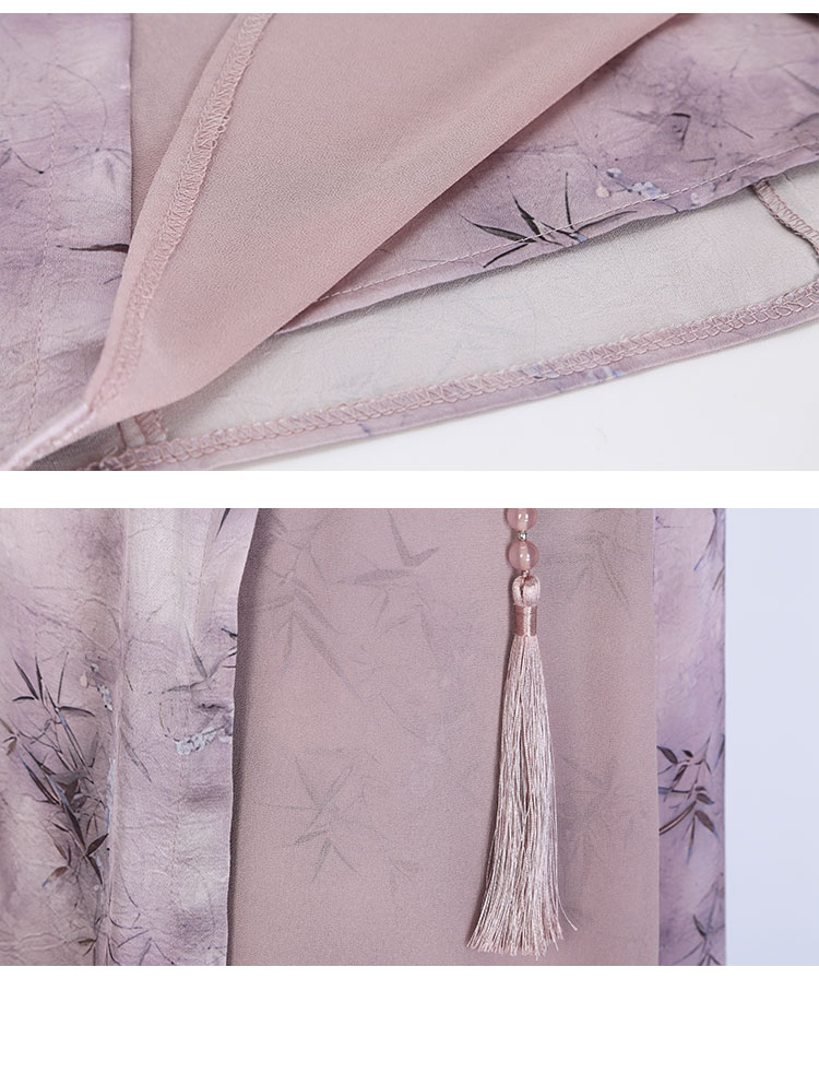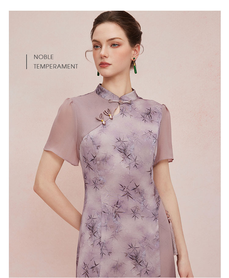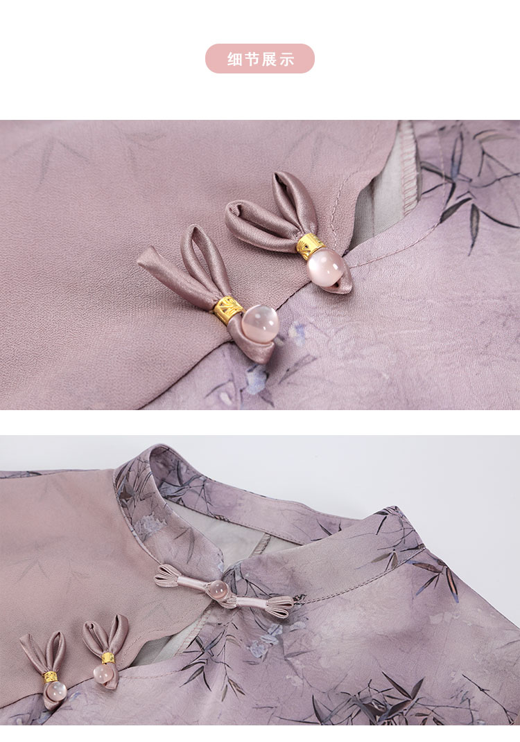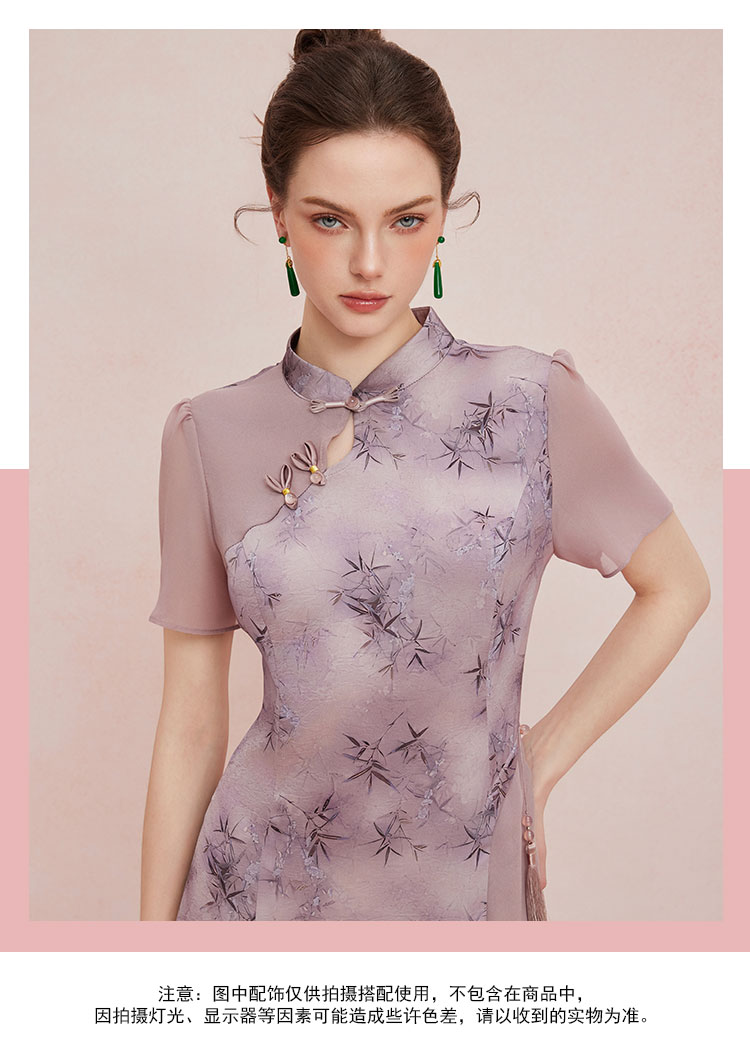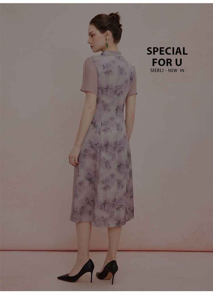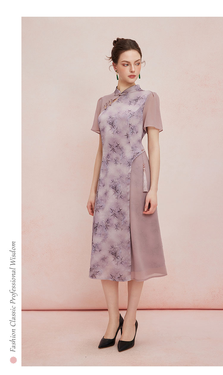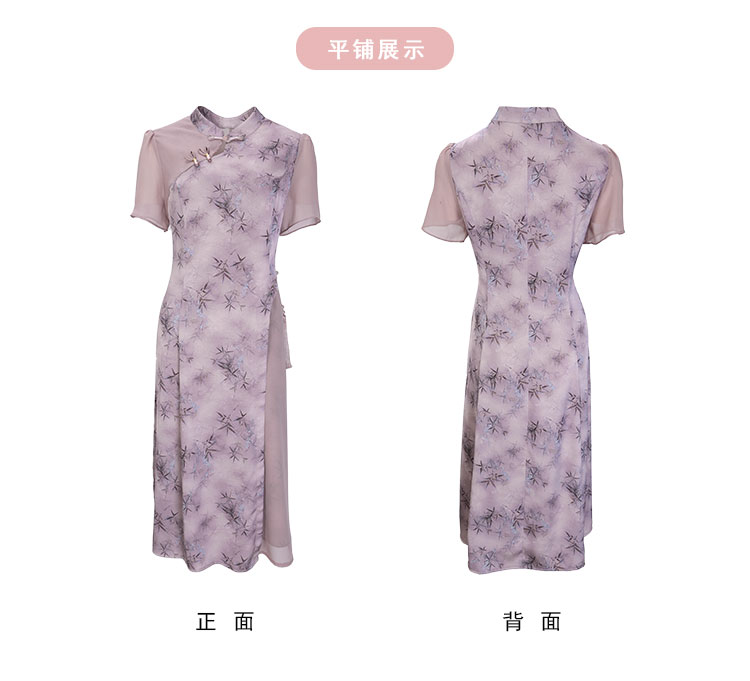 QF895斯尔丽2025新款新国风改良旗袍水墨国画清雅气质拼纱散摆连衣裙
