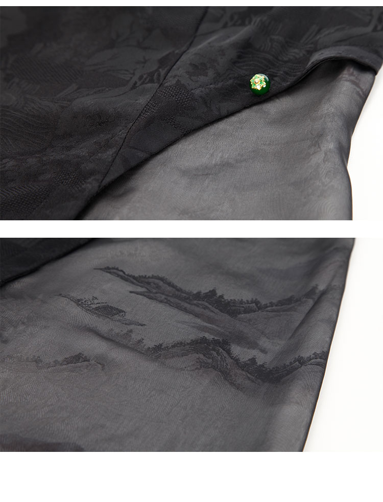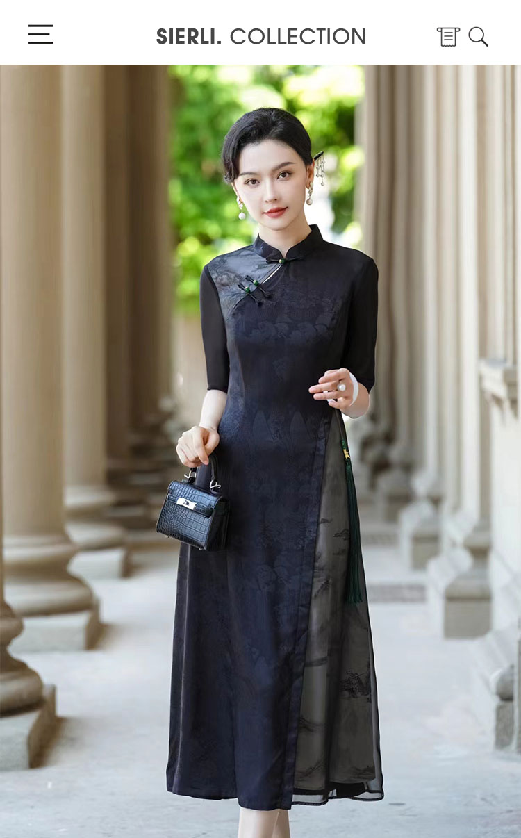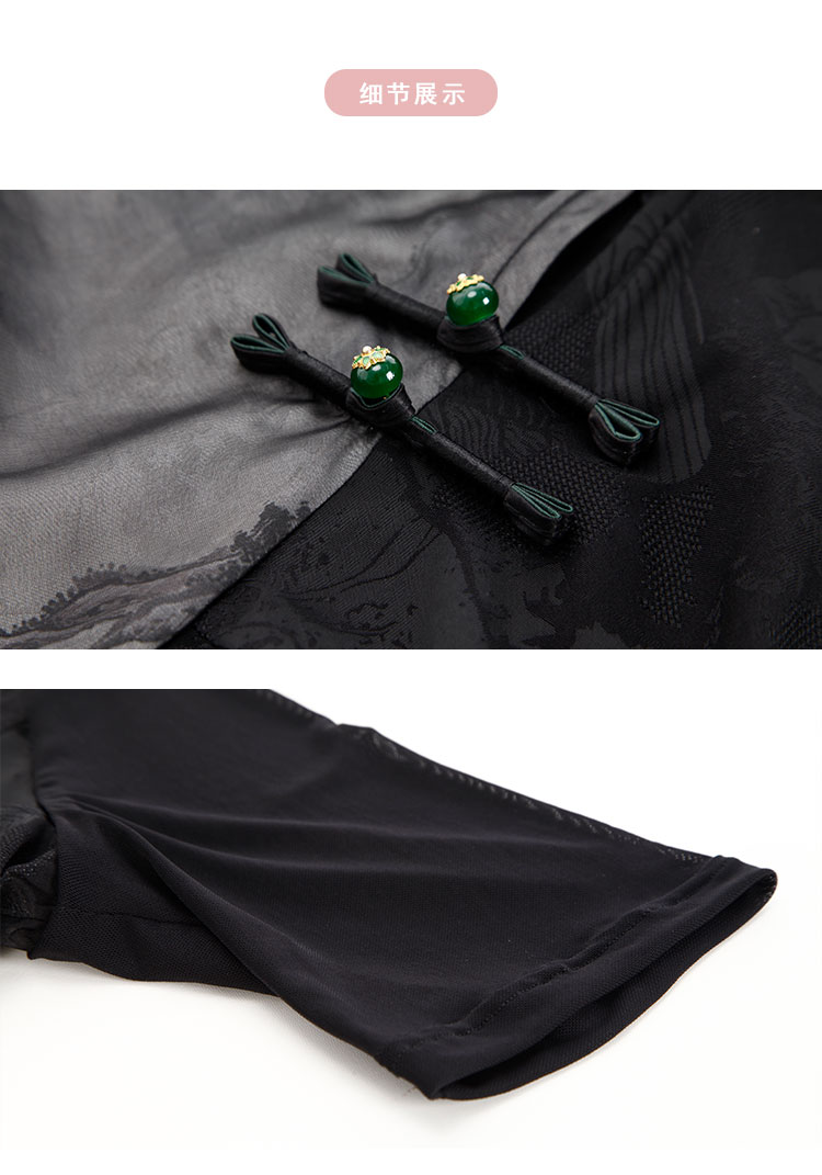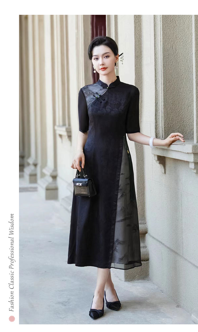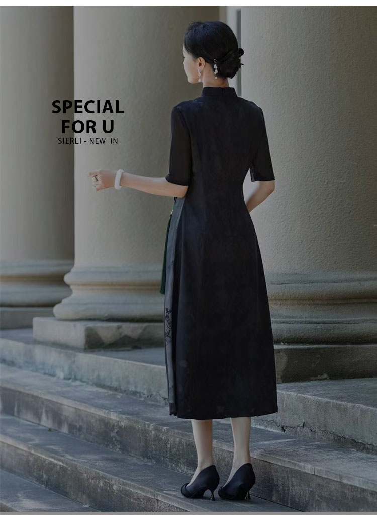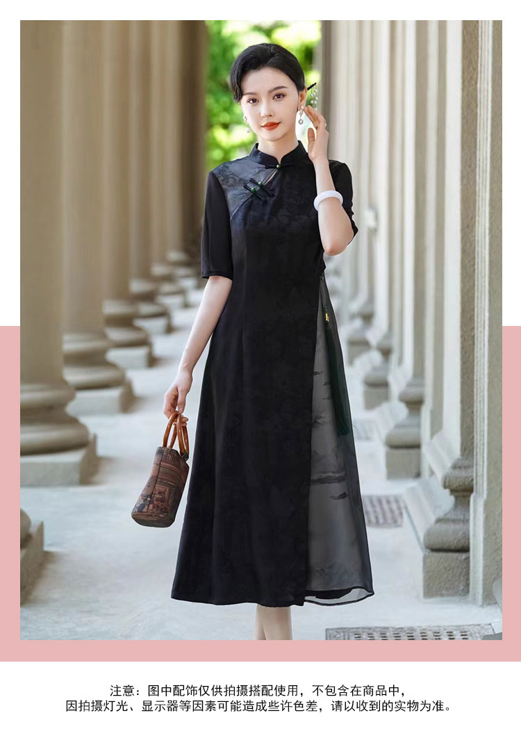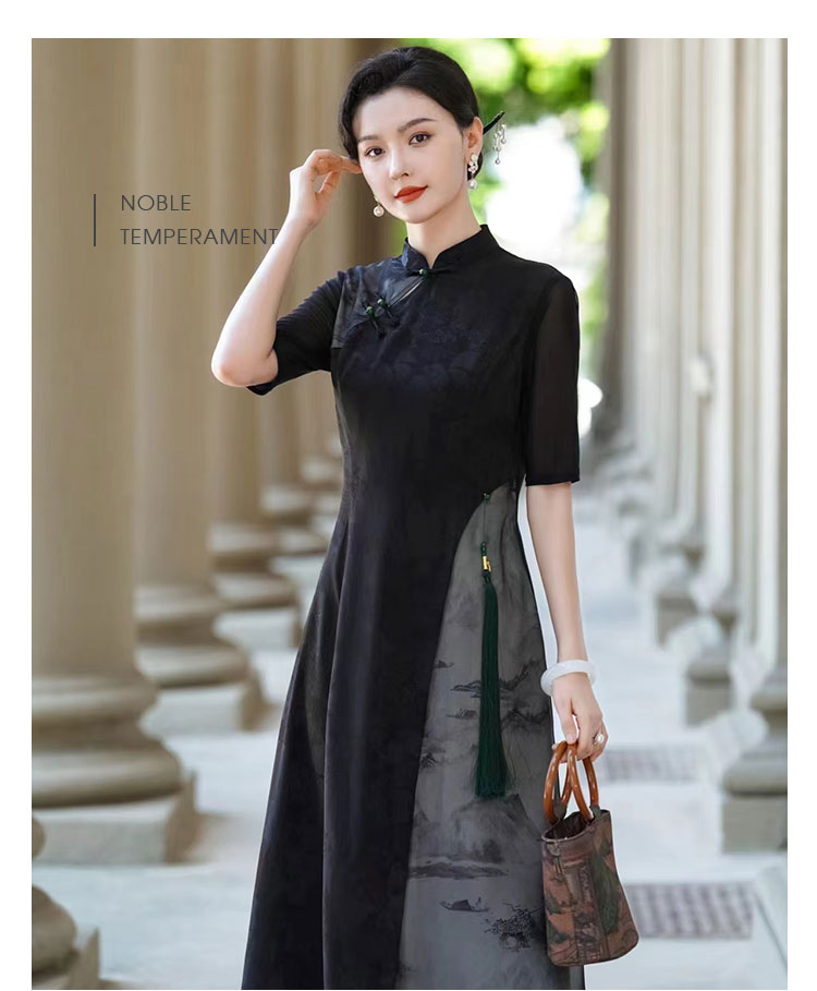 PG801斯尔丽24新款改良旗袍夏季新款薄透朦胧水墨画收腰散摆显高连衣裙