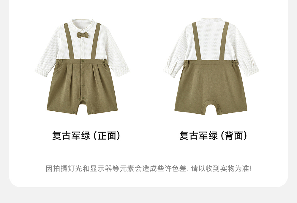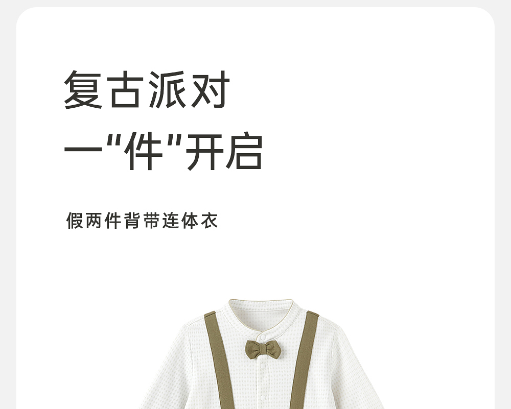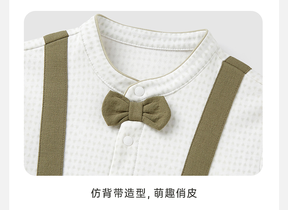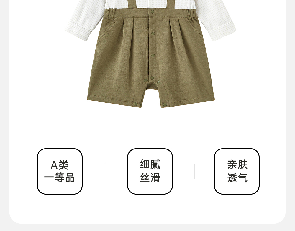 英氏婴儿衣服春夏长袖透气男童连体衣假两件爬服纯棉YRHAJ1R055A