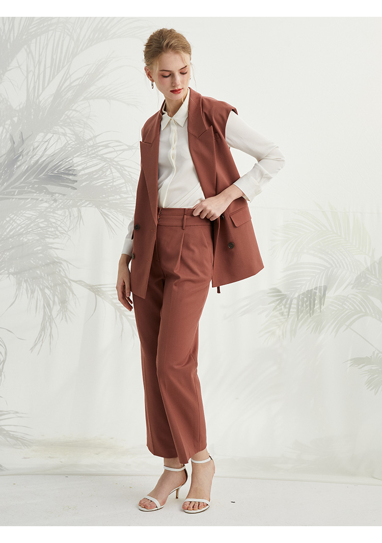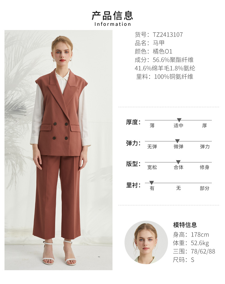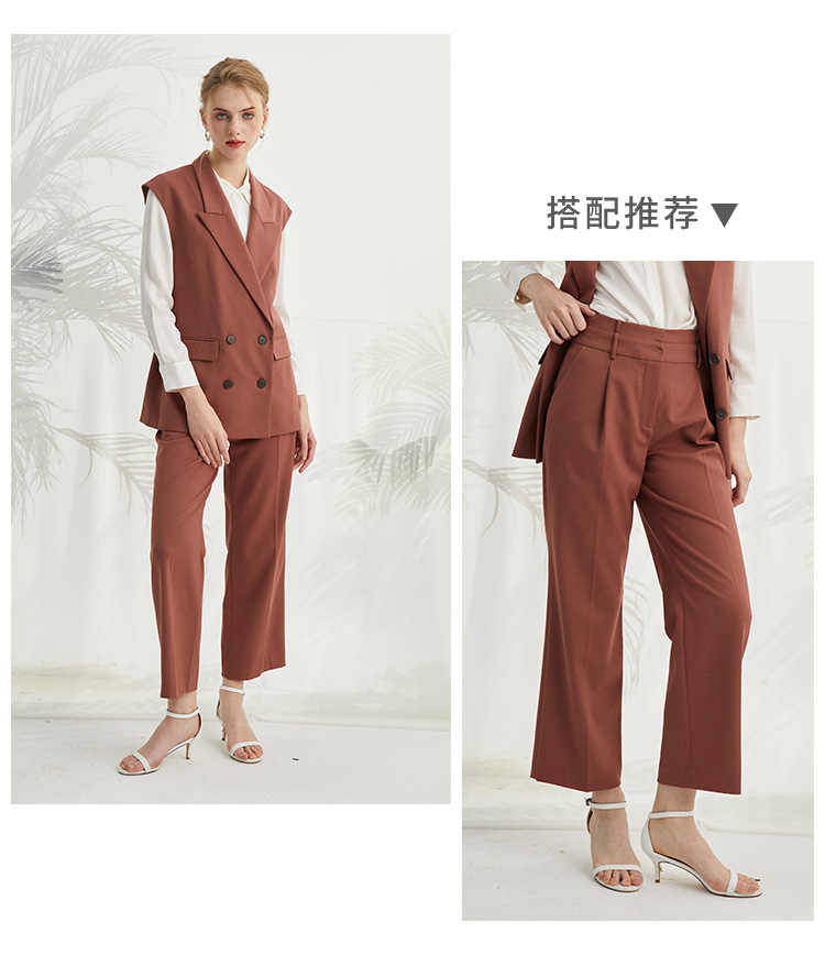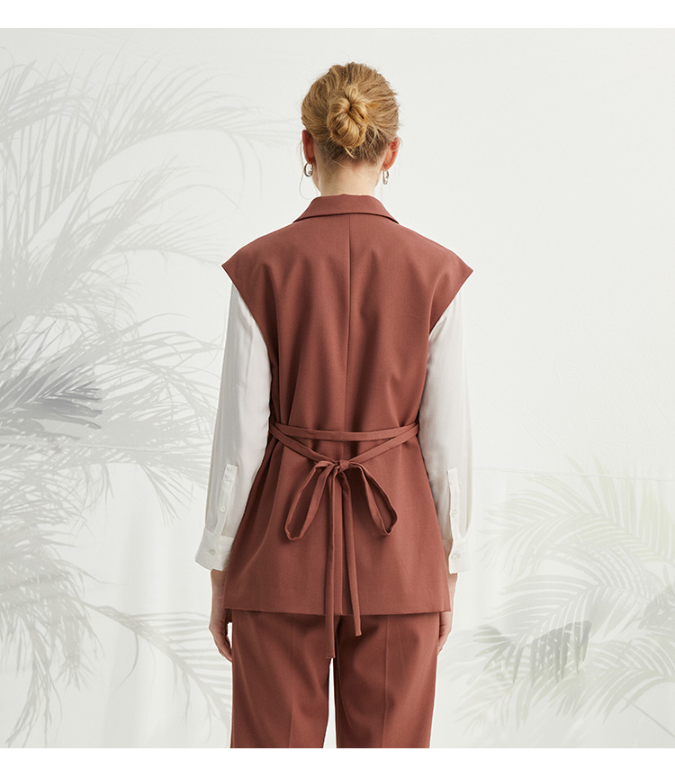 VIVIAN LIU TZ2413107梅春女装新款西装领双排扣中长款马甲