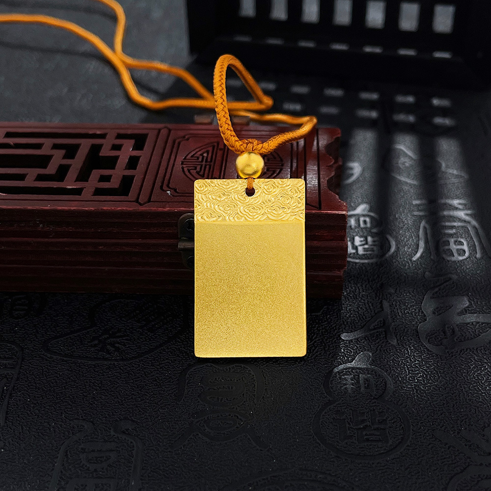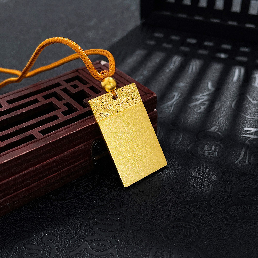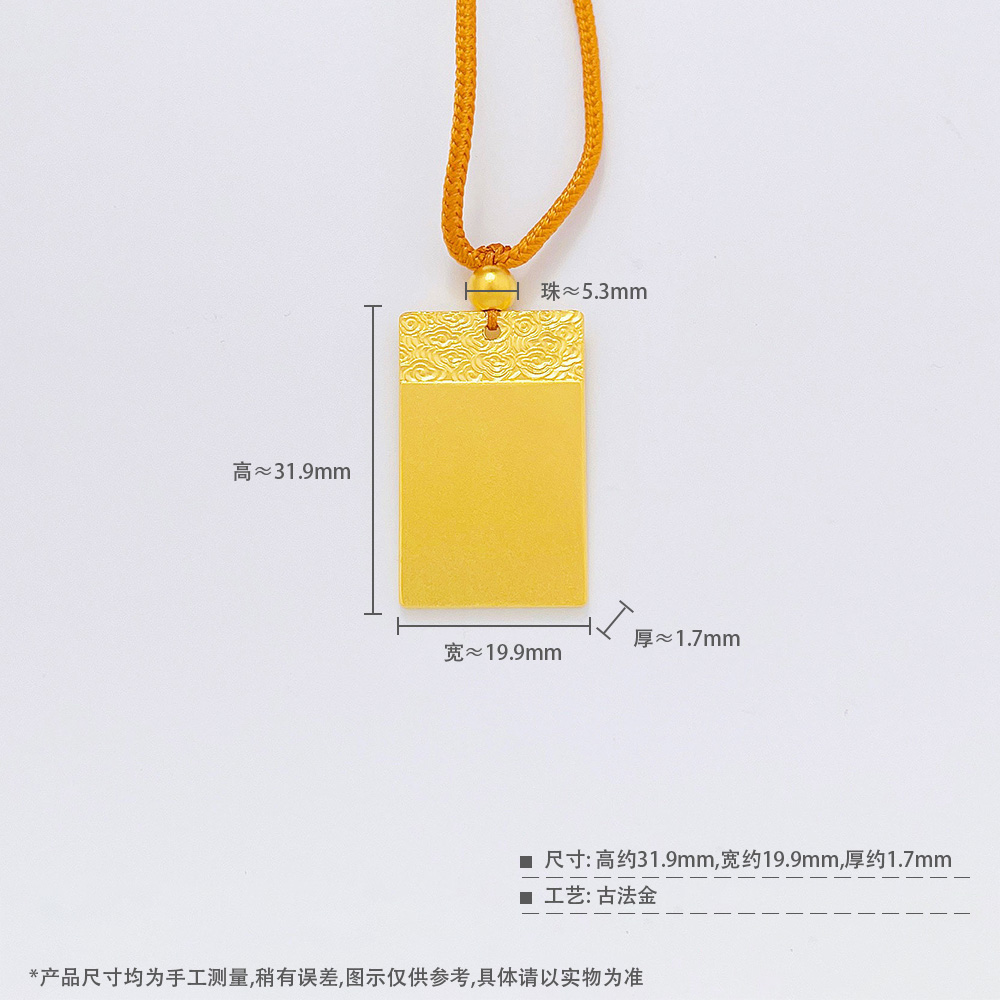 【限时克减150元】足金999.9 古法实心挂绳吊坠平安无事牌祥云如意吊坠(含珠子、面宽约31.9*19.9mm)(GFDZW00439-01)预售产品下单后不退款不退货不换货不补差价