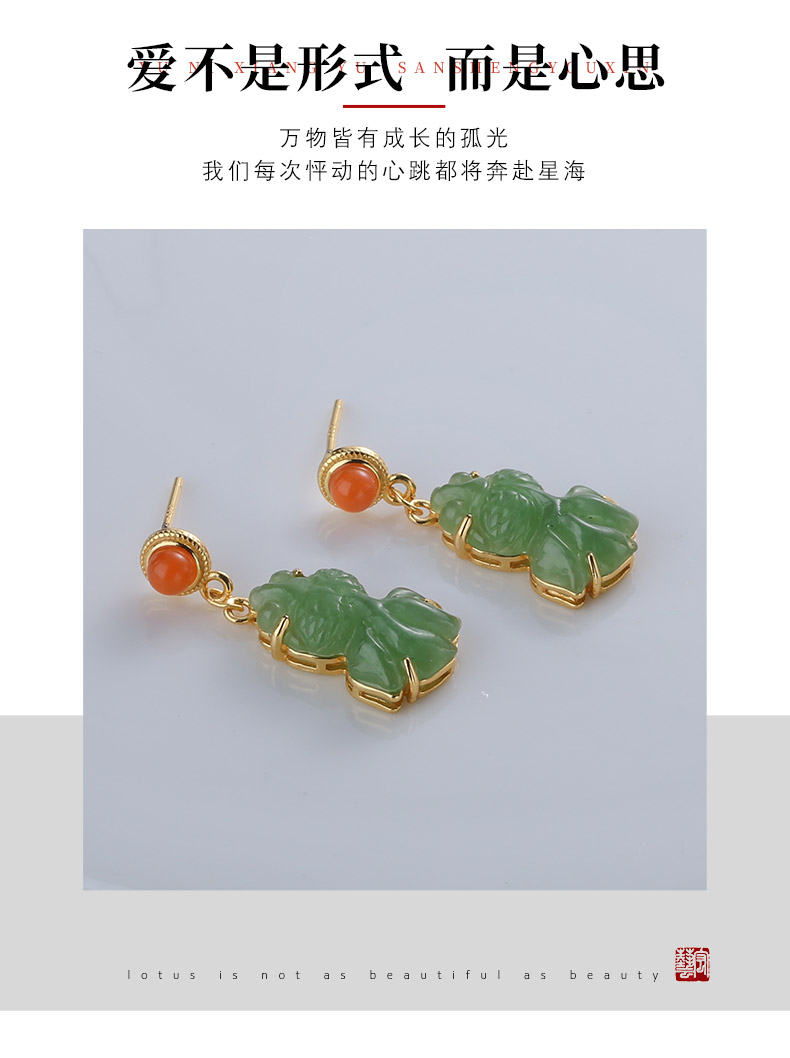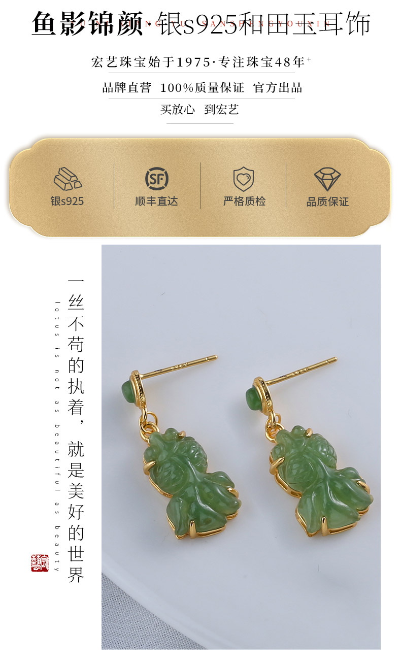 【宏艺珠宝】鱼影锦颜和田玉银耳饰·银s925耳饰