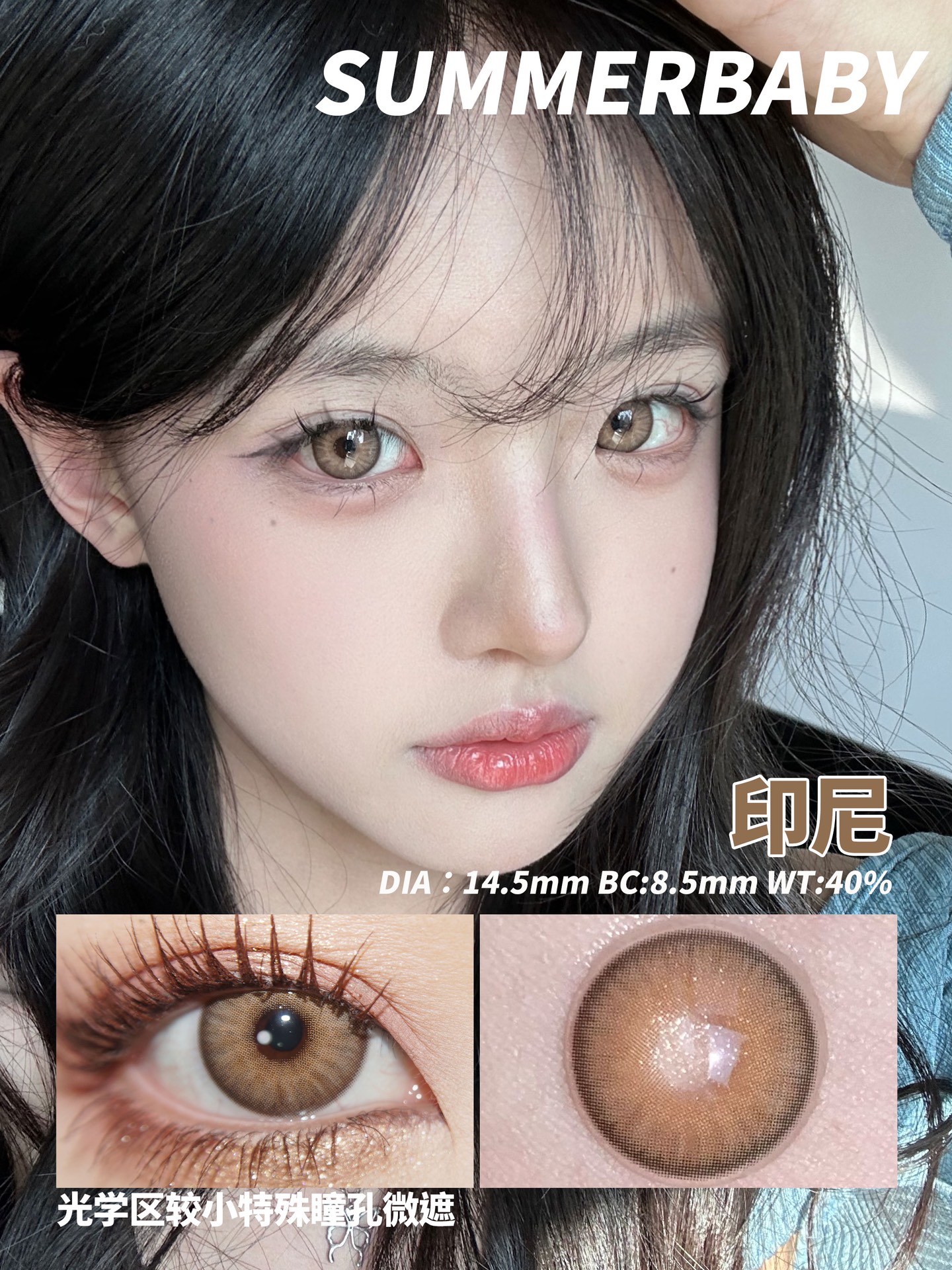 summerbaby月抛 印尼 棕14.5mm 含硅水凝胶 不同度数拍2盒