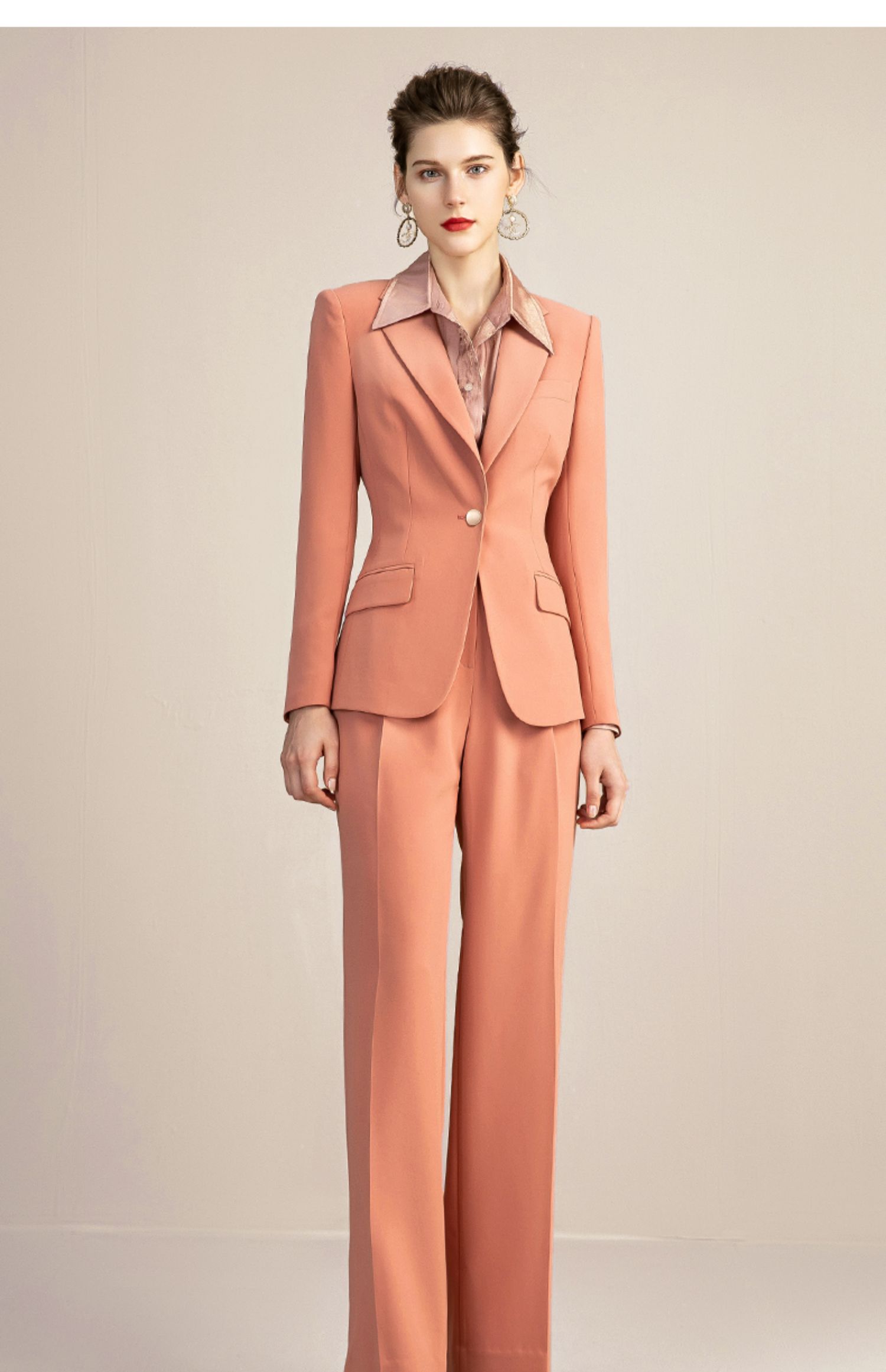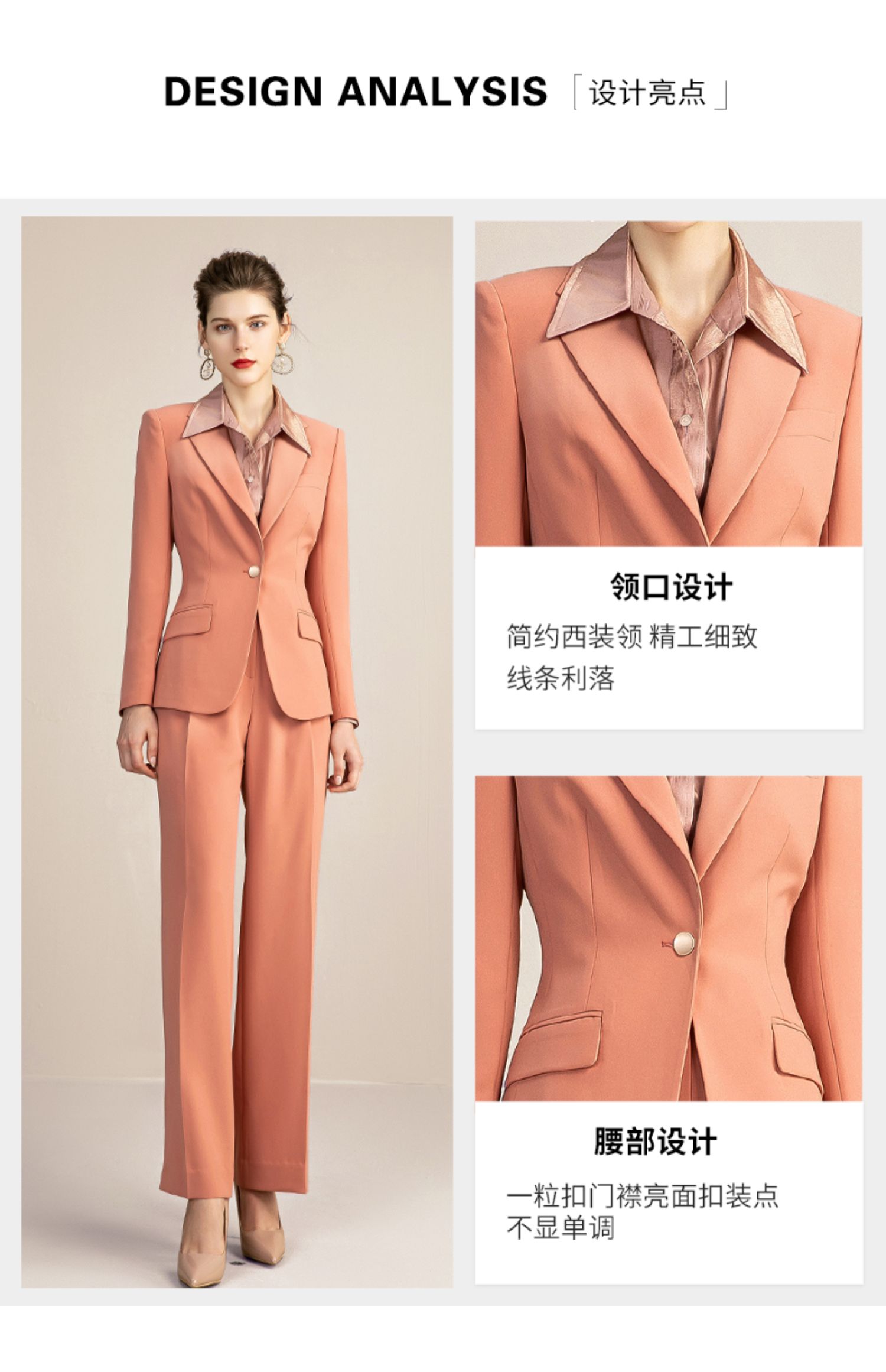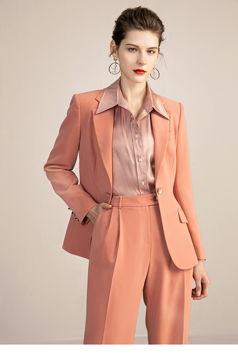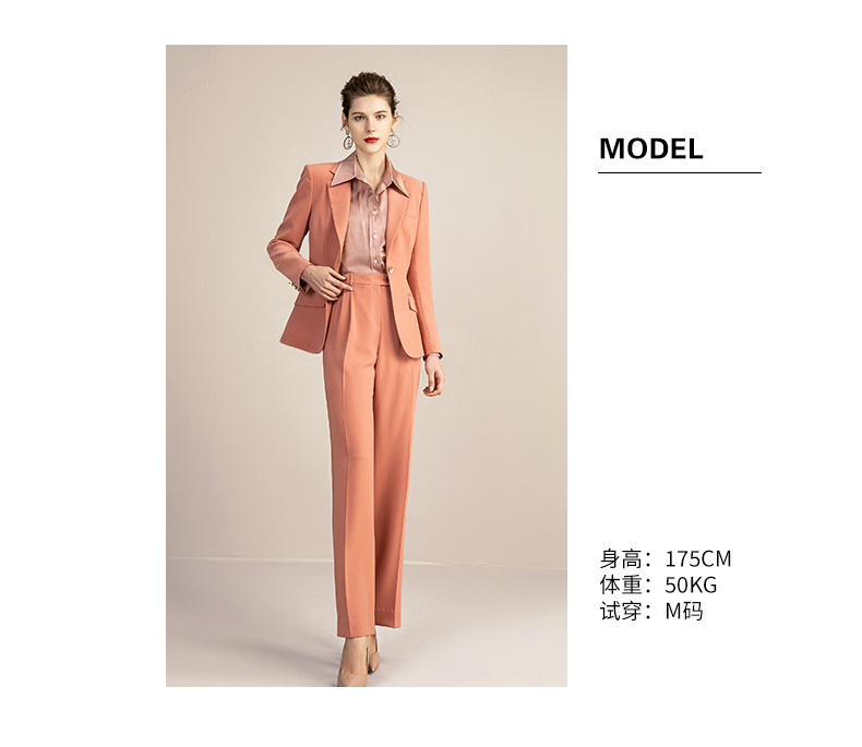 IWY/橘色高端时尚西装套装女气质正装商务修身一粒扣西服 213118C1+P6