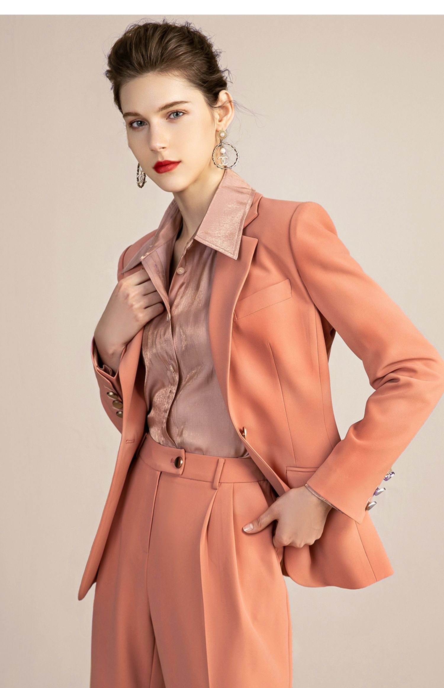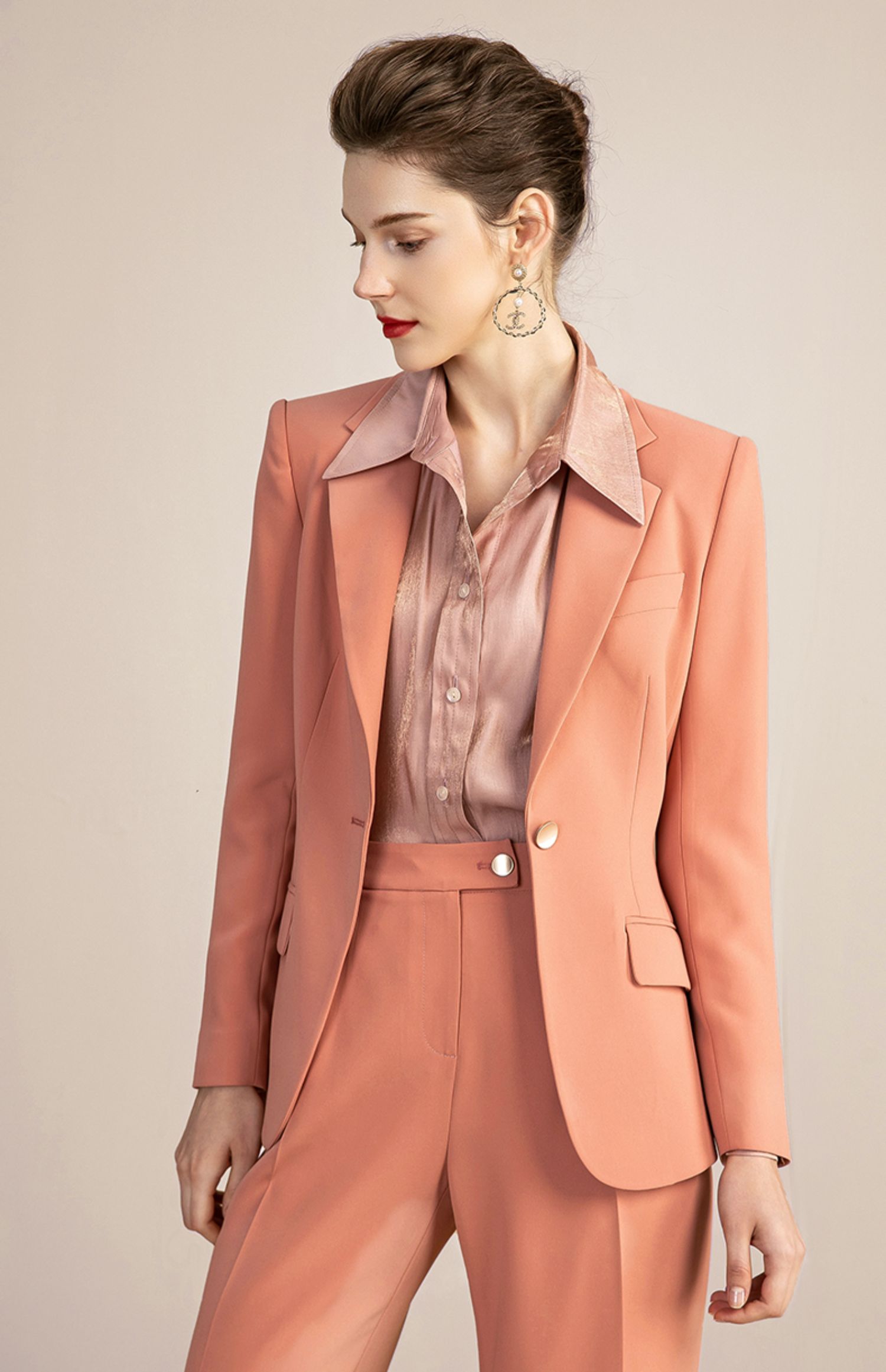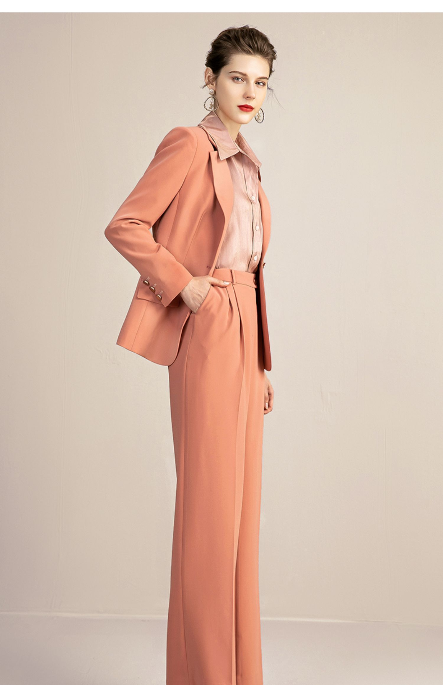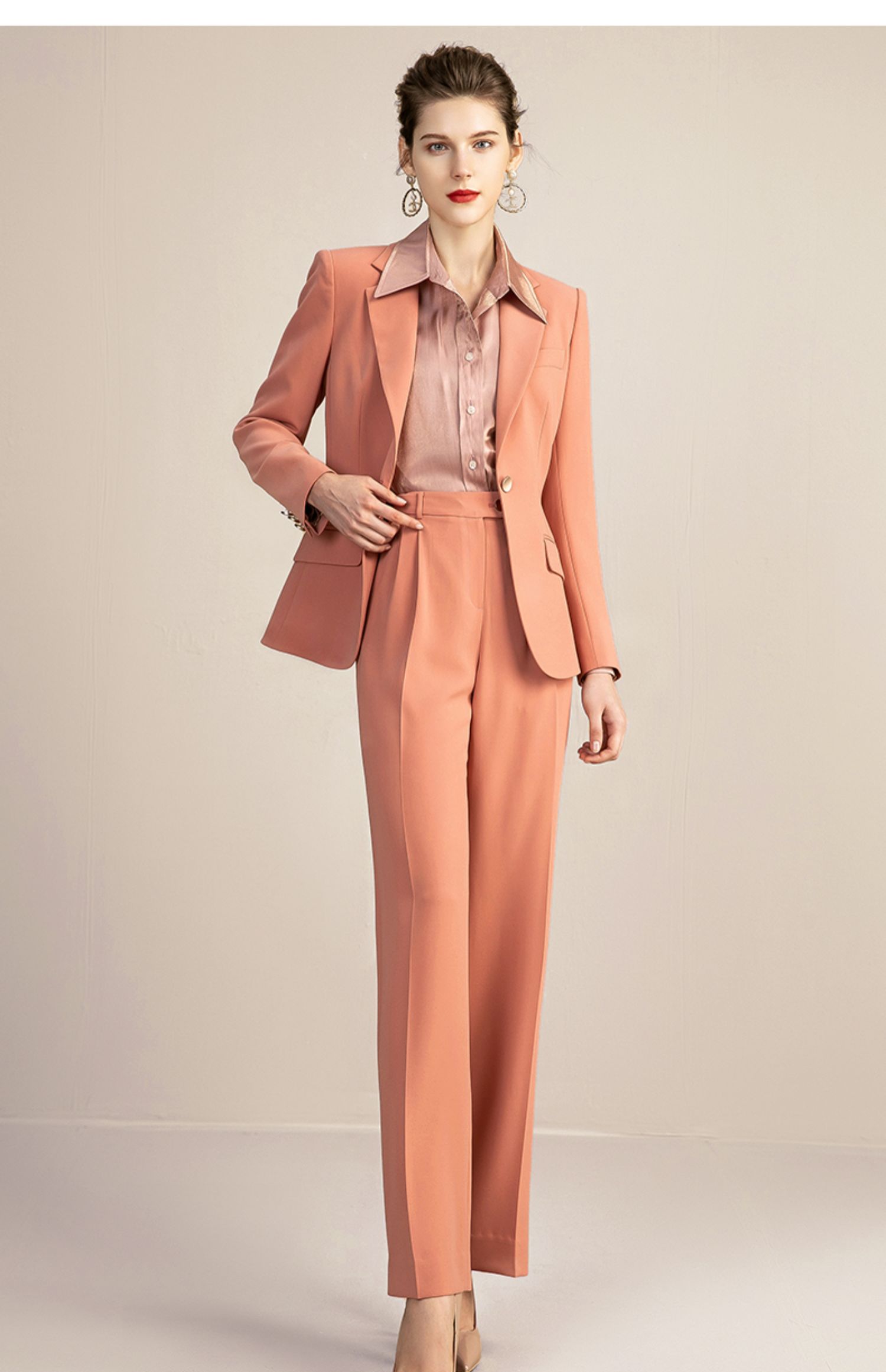 IWY/橘色高端时尚西装套装女气质正装商务修身一粒扣西服 213118C1+P6