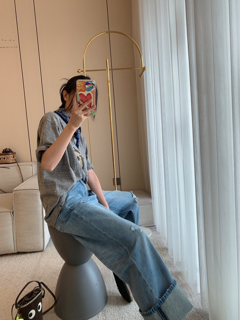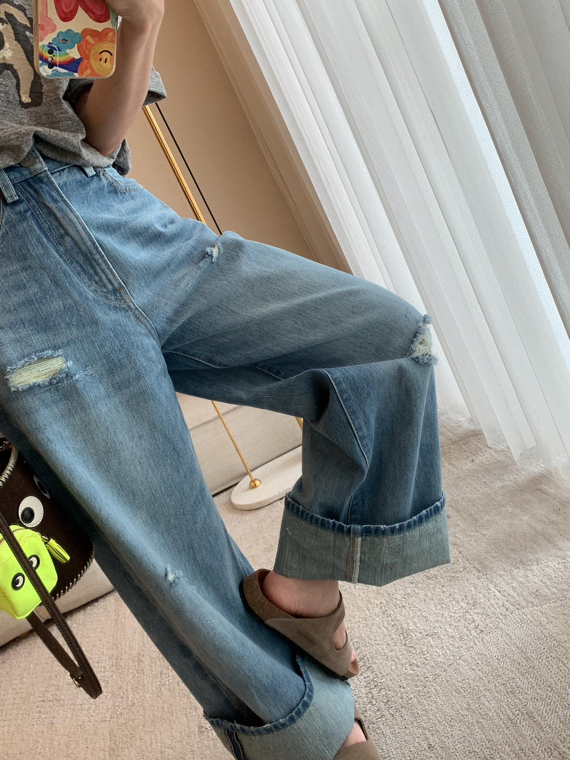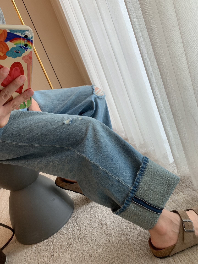45R的王牌牛仔裤!我会一年四季都穿,我也会一年四季搭配出来给你看,不同季节不同味道,破洞的裤子,心就完整了。