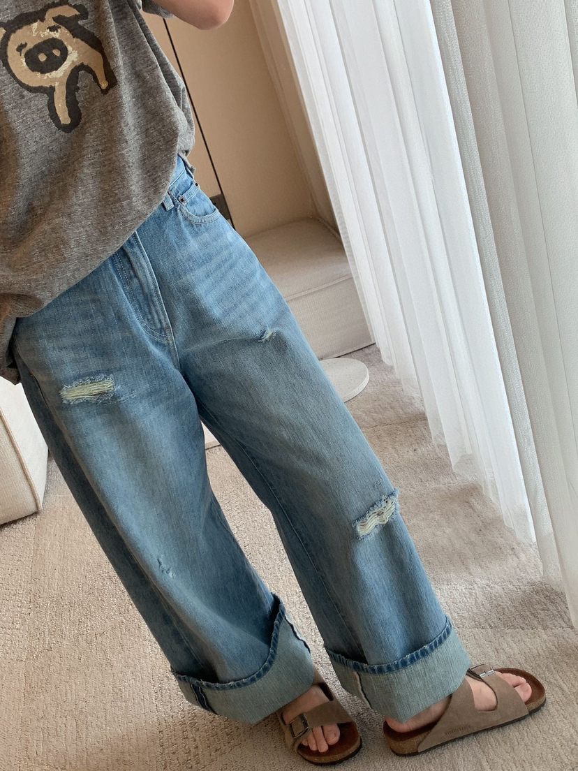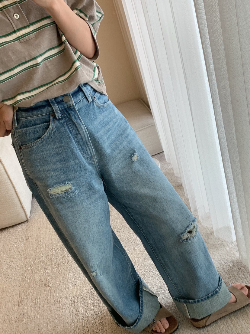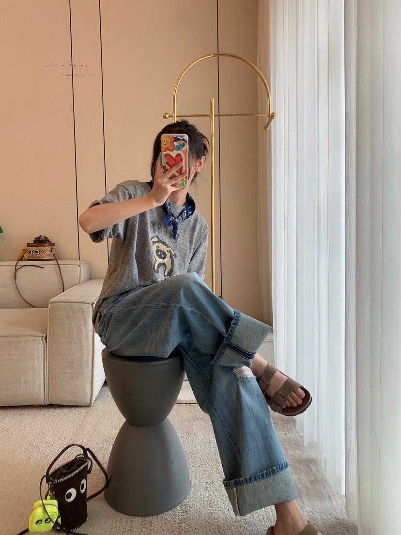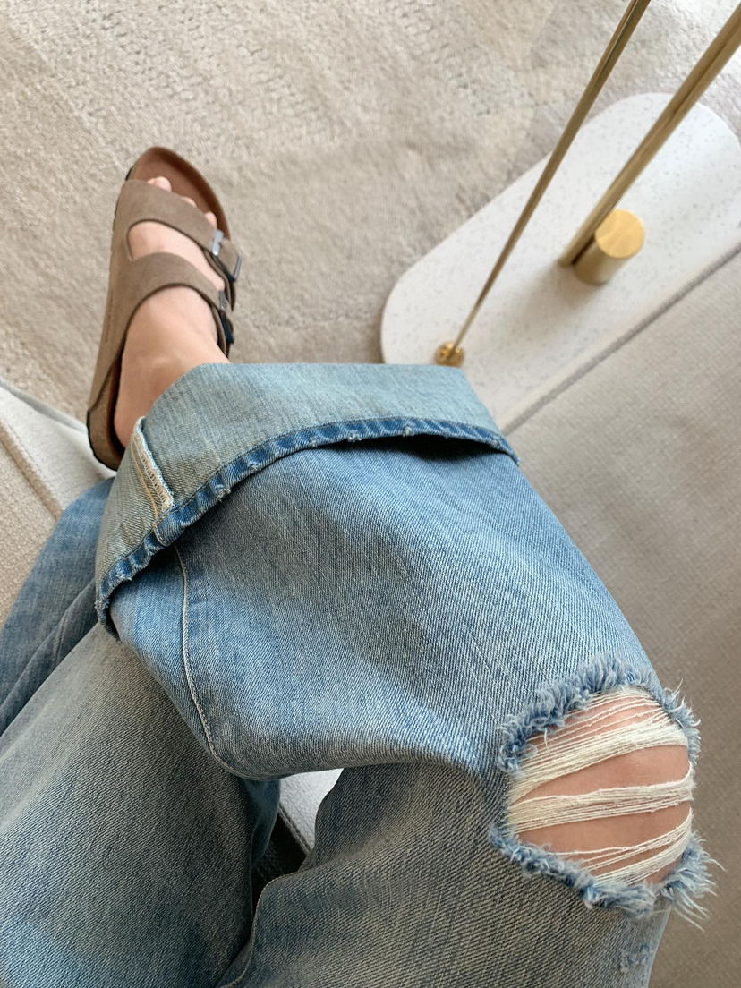 45R的王牌牛仔裤!我会一年四季都穿,我也会一年四季搭配出来给你看,不同季节不同味道,破洞的裤子,心就完整了。