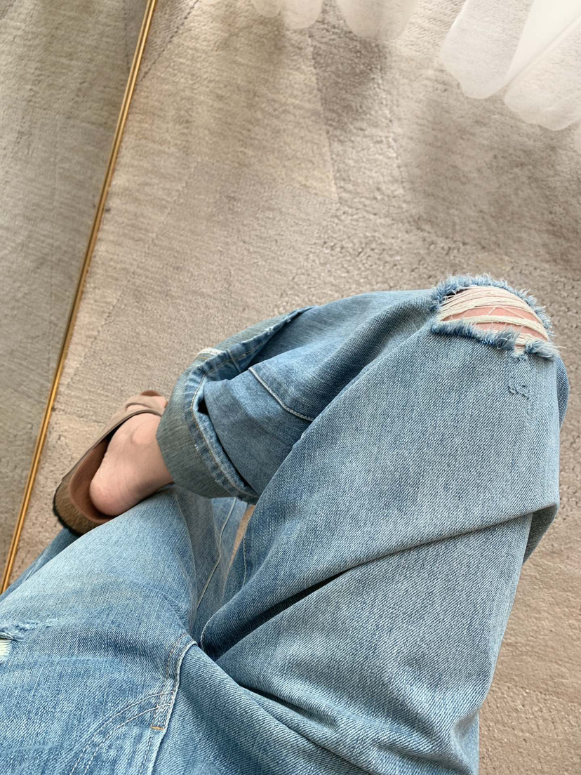 615-5 自留 45R 潇洒不羁 松弛帅气 柔软的破洞牛仔裤 客供面料 个性十足 限量‼️