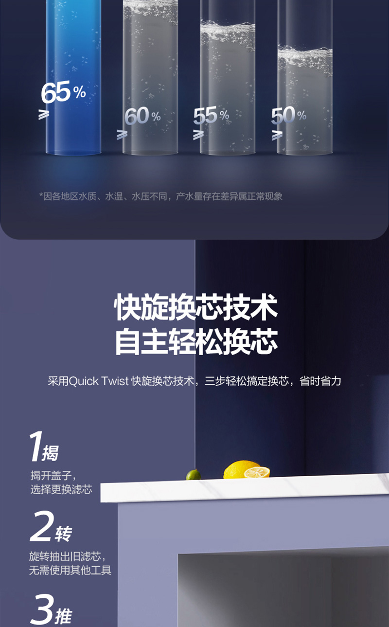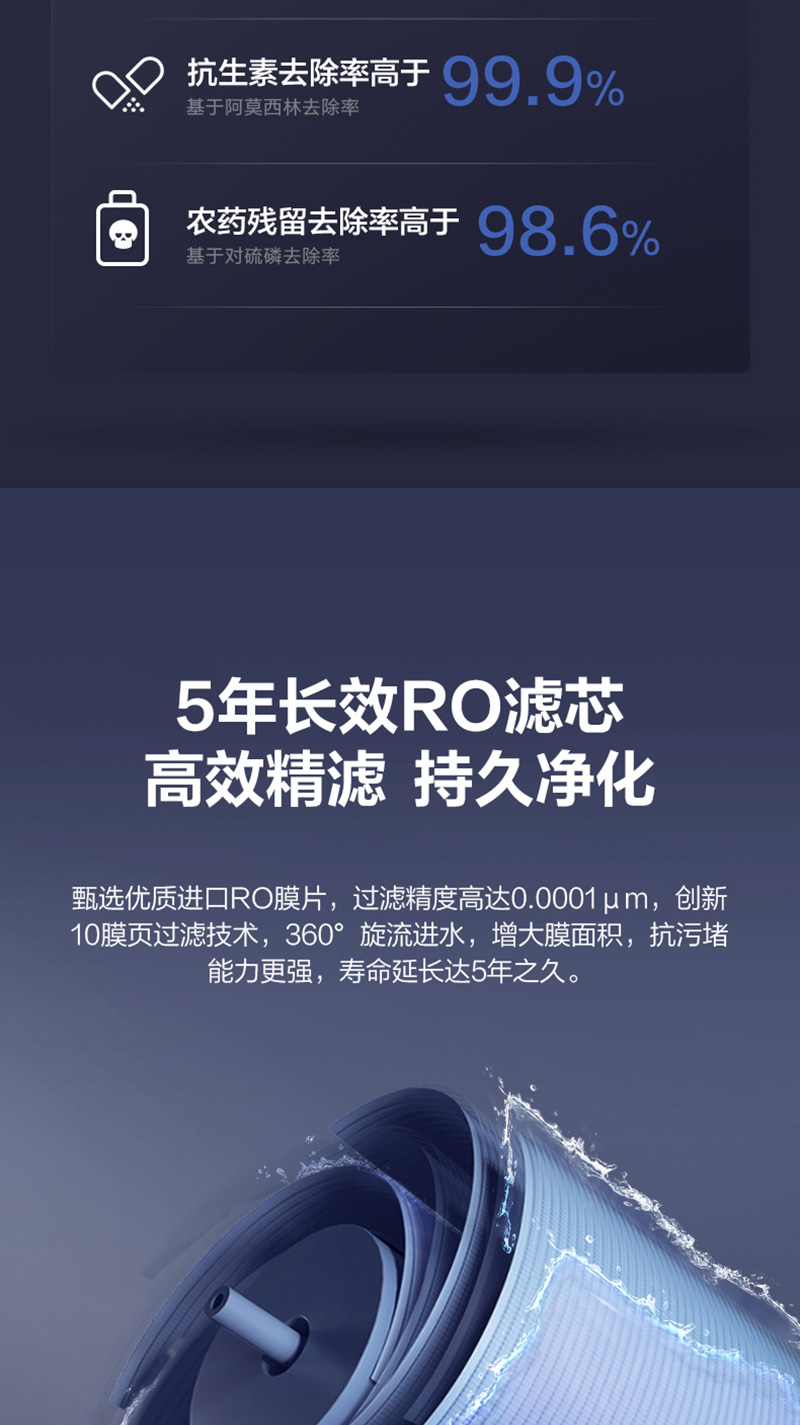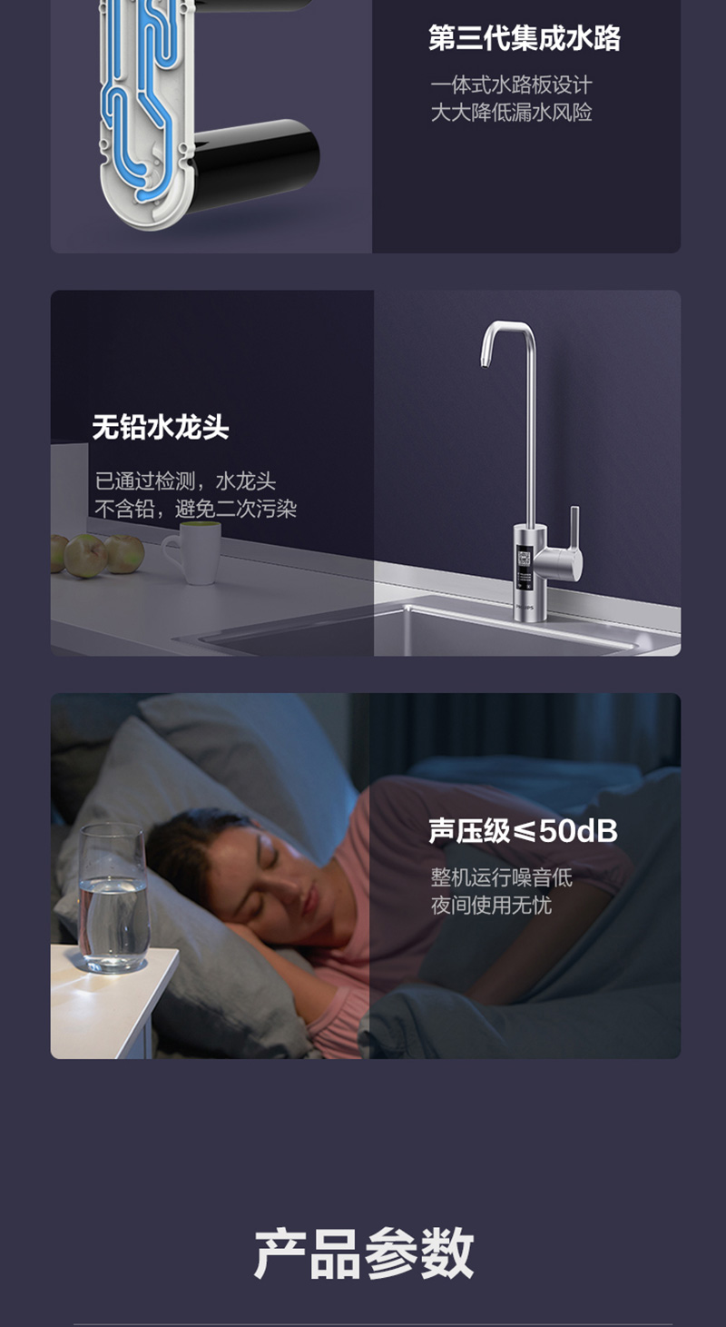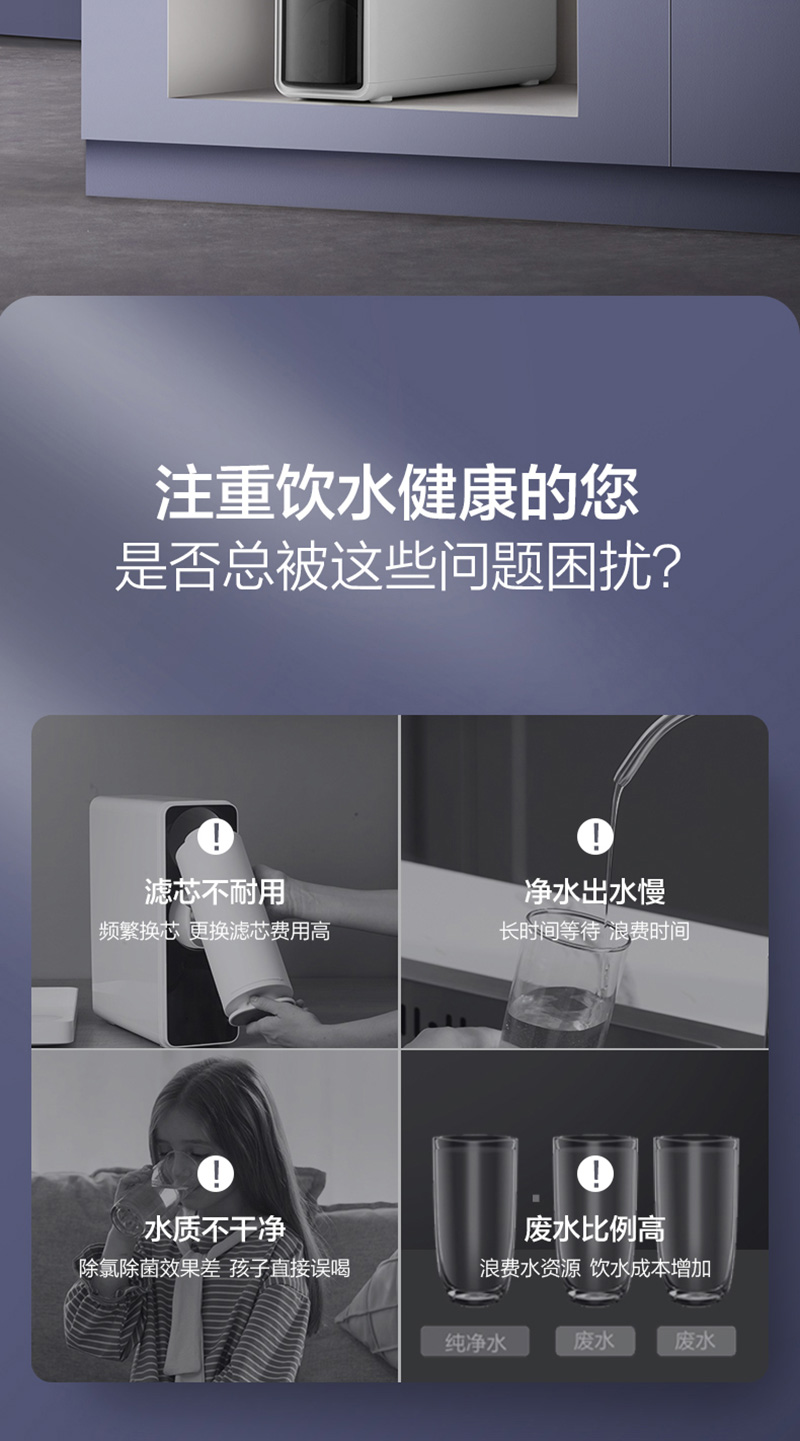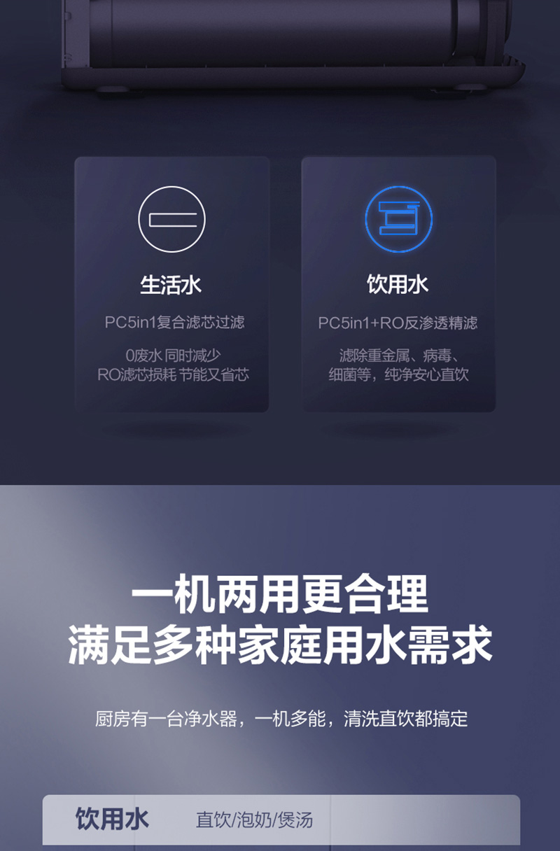 飞利浦 双出水家用净水器 800加仑无桶反渗透直饮纯水机AUT7016