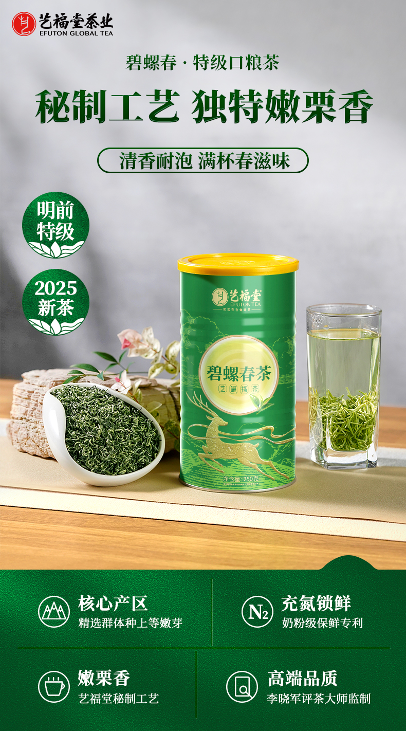 艺福堂2025新茶御螺韵碧螺春茶250g/罐EFU10+