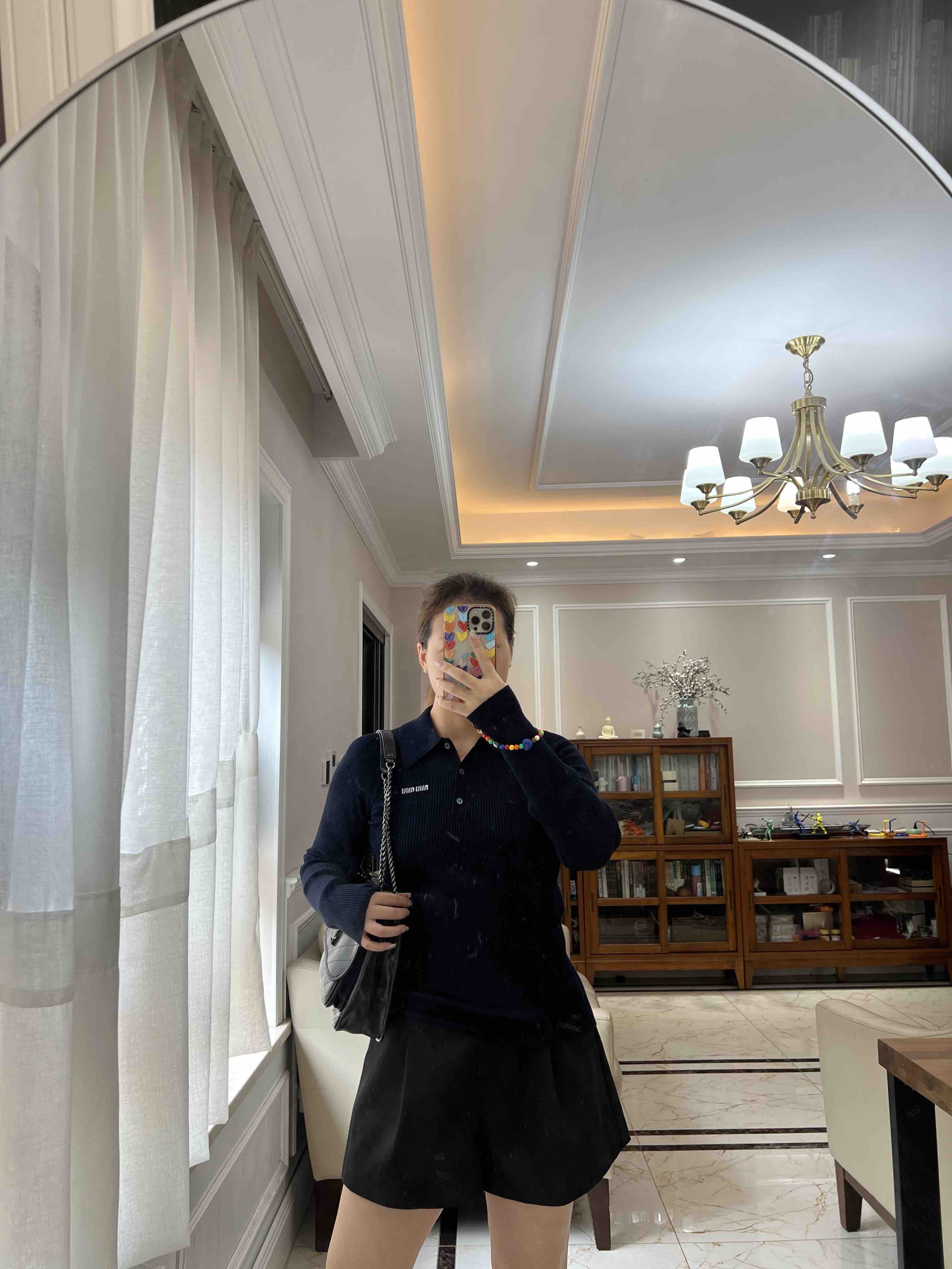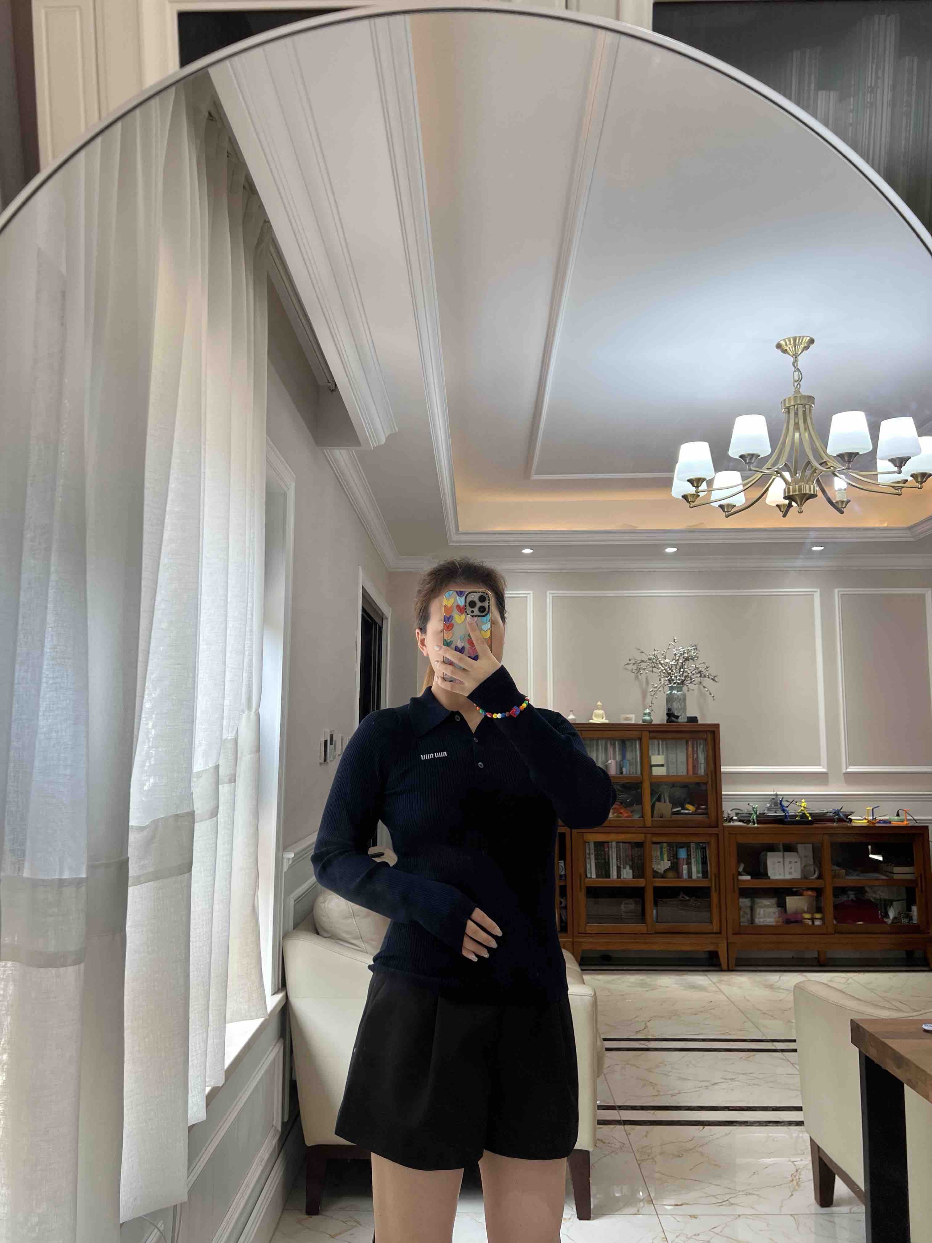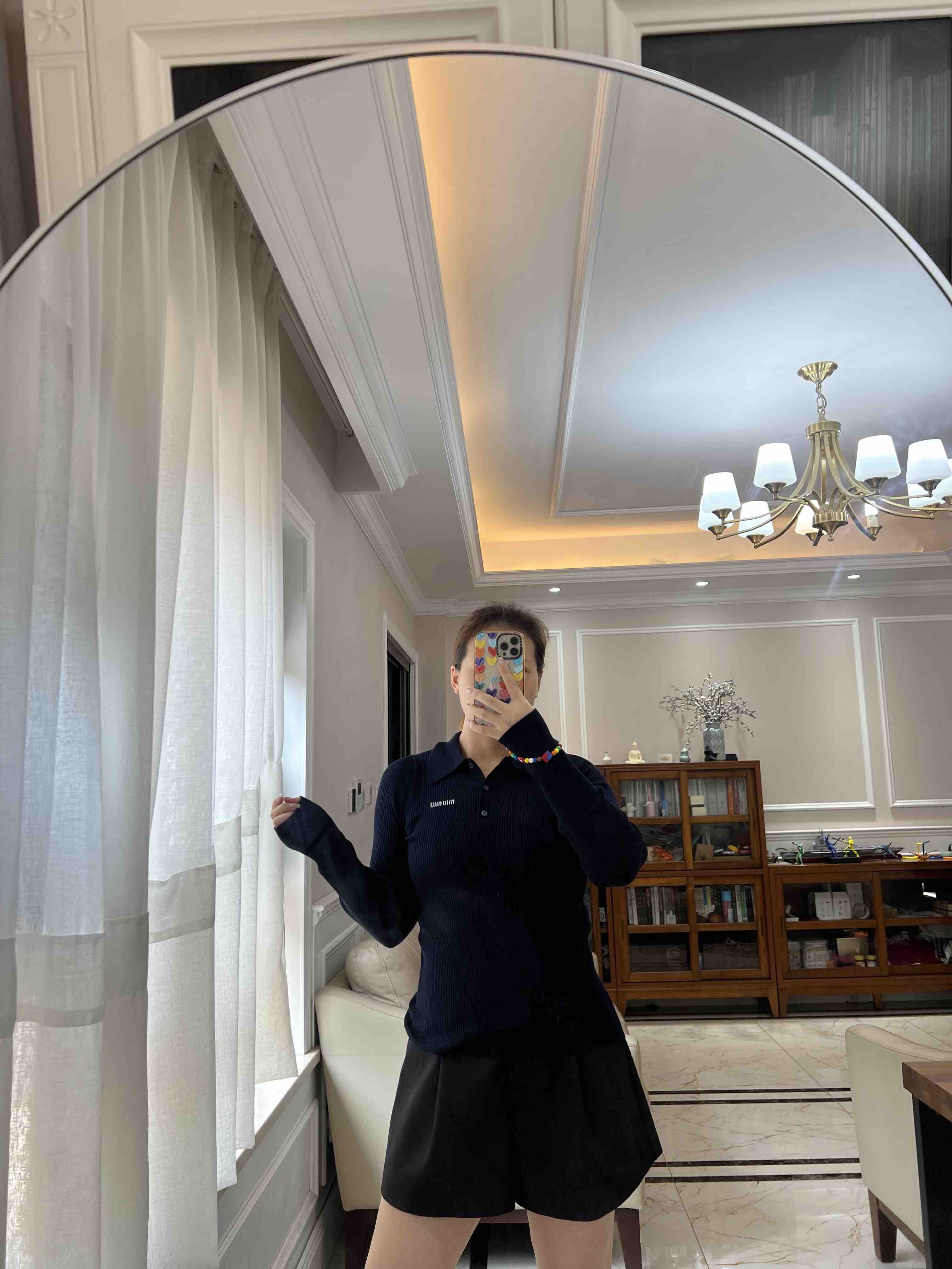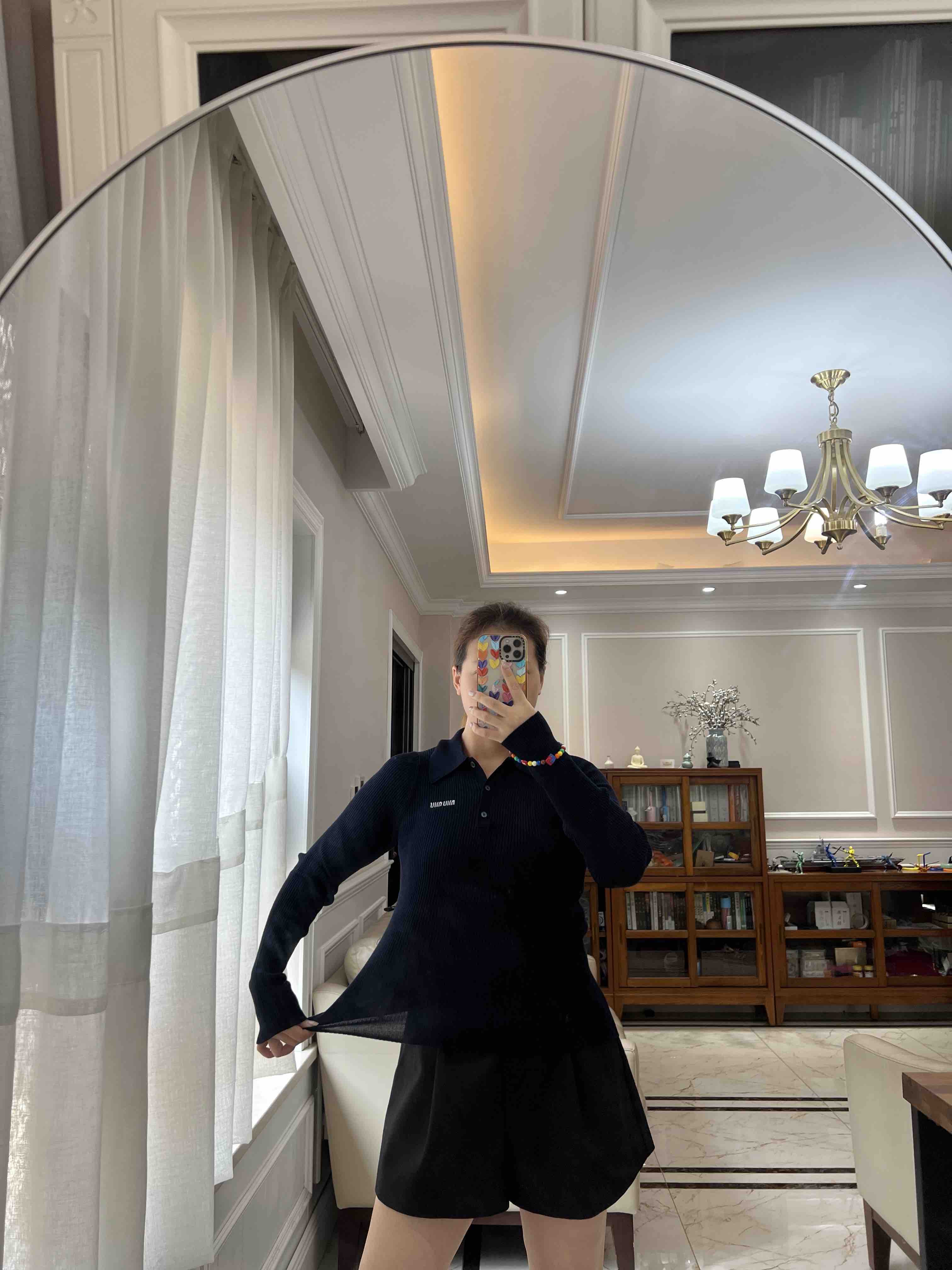 材质是桑蚕丝+羊绒,啥材质优越都给你整上,体感温润亲肤弹力舒适,还格外的婀娜多姿,polo领平衡了修身款的妖娆,比较冷静克制的婀娜多姿。