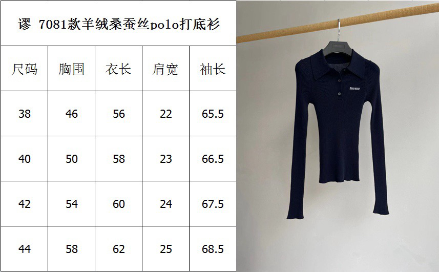 821-2 圆正渠道货 miu羊绒/桑蚕丝 坑条针织 polo领长袖针织打底衫