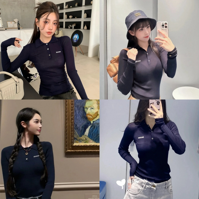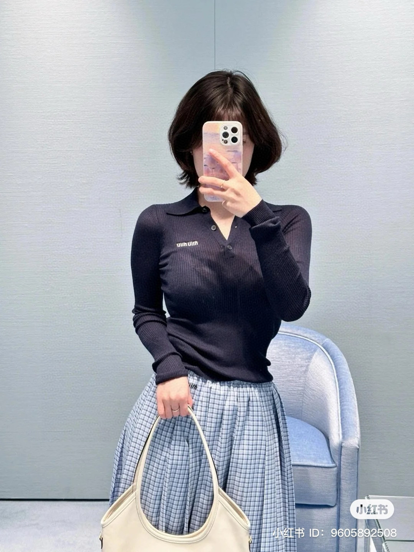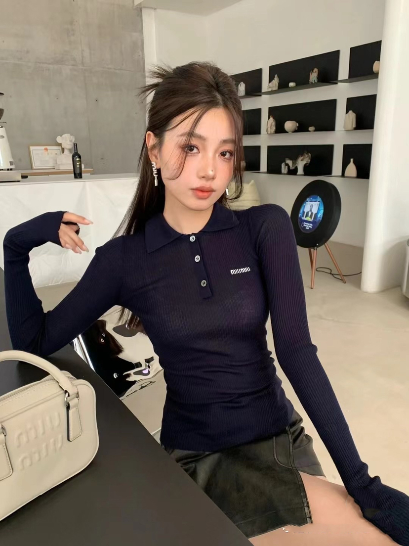 Miu炒鸡火爆的polo领针织长袖,你要知道,一般的polo领长袖,我至多敢卖两三百,这个卖499我是鼓足了鼓足了鼓足了勇气,因为它真的真的真的值得。排他性独家圆正渠道货,上身就是非一般的体感,凹凸有致。