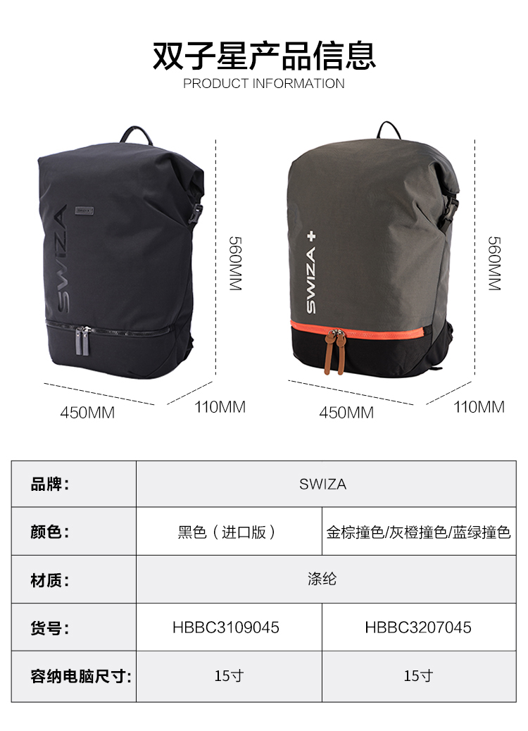 SWIZA 双子星双肩背包
