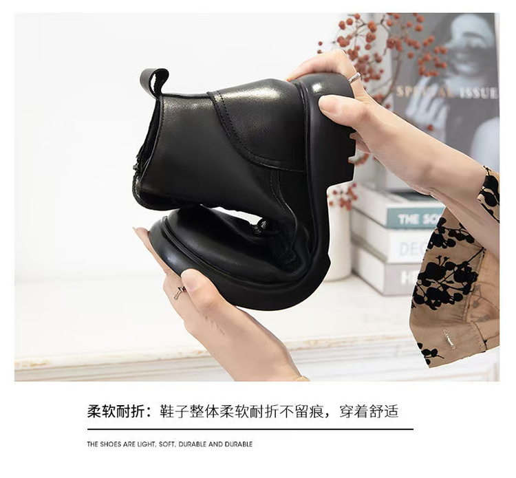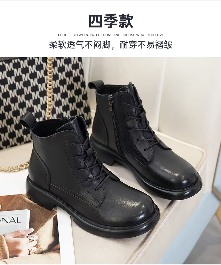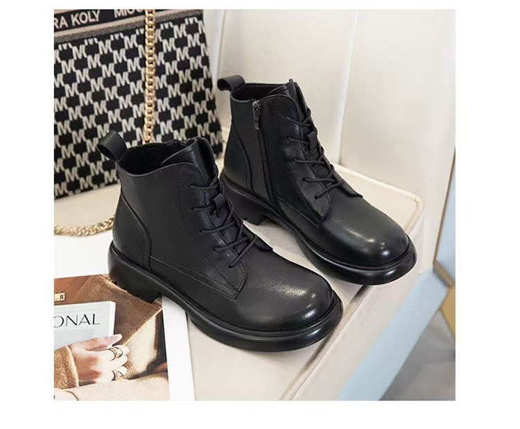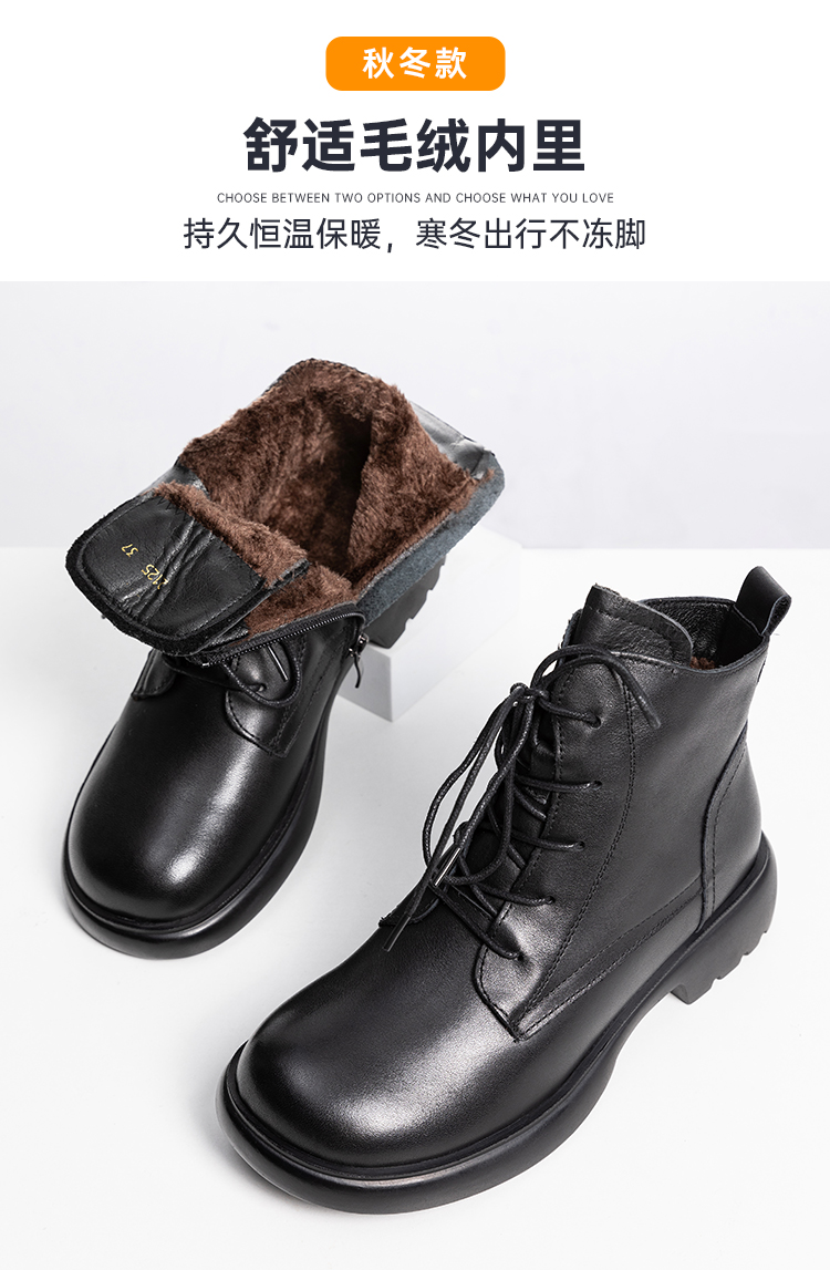 【实付满399送保温杯】【复古圆头马丁靴】加绒保暖棉皮鞋 加厚系带女款皮靴子