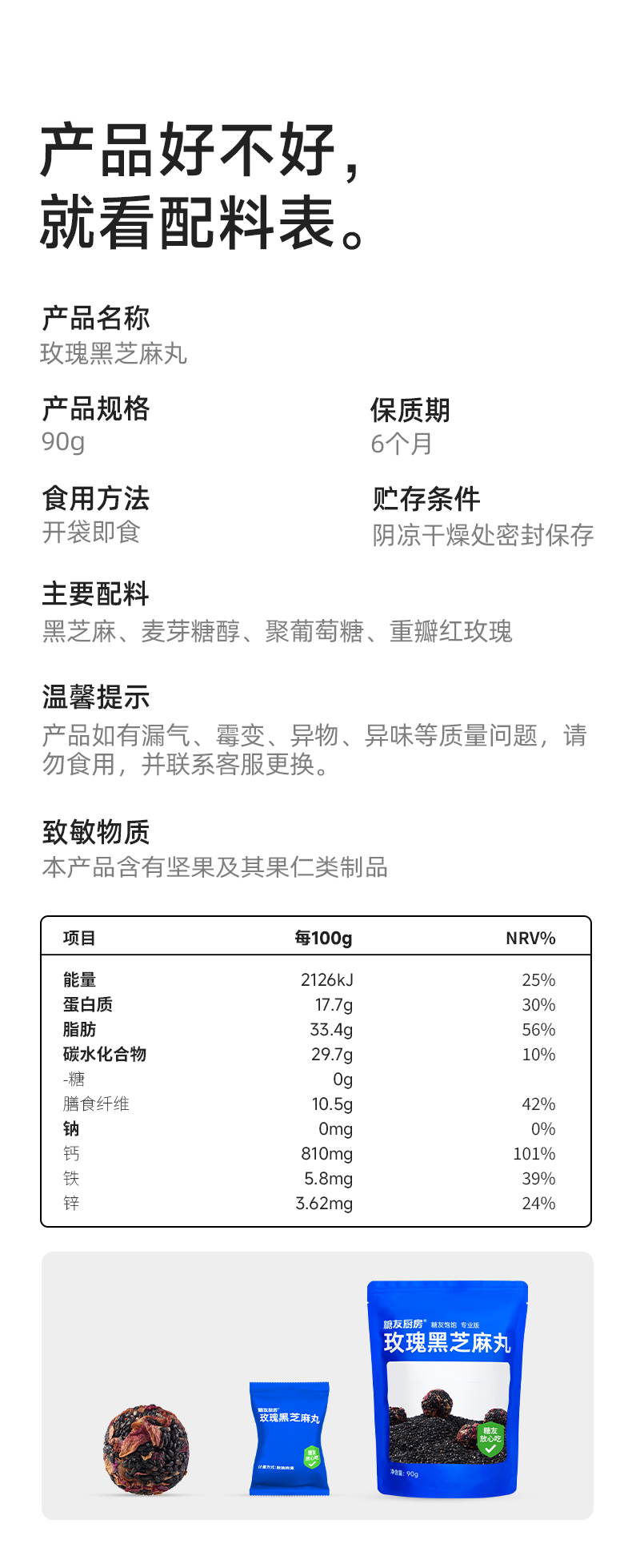 糖友厨房 玫瑰黑芝麻丸 90g/90g*3