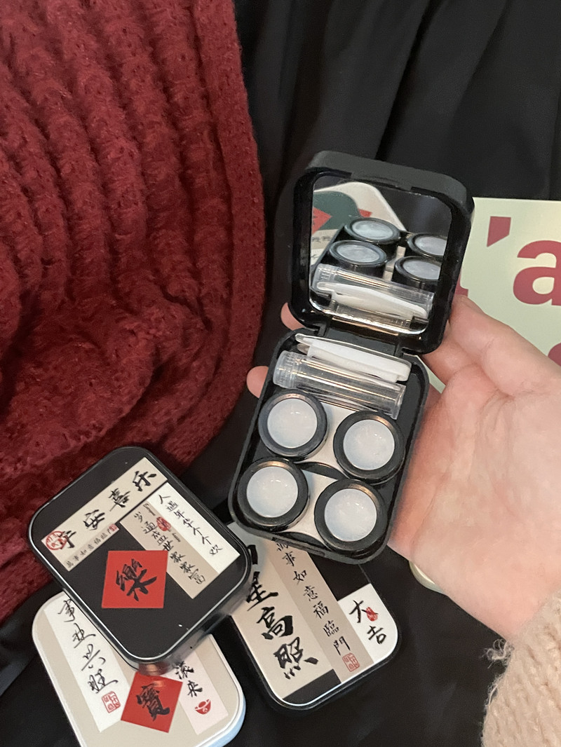 伴侣盒套装组成:双联盒、镊子 ,配戴棒、镜子、瓶子。