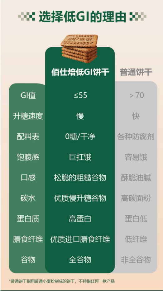 低GI无糖饼干:无糖✔高钙✔高膳食纤维✔高饱腹感
